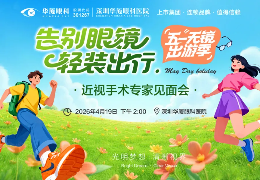 4月19日(下周日)下午2:00,深圳华厦眼科医院将举办“告别眼镜 轻装出行 近视手术专家见面会”,报名即可享多重专属福利,助你轻松摘镜,拥抱清晰假期!