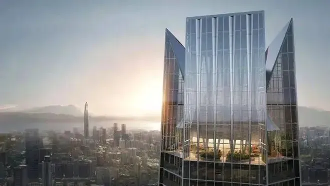城脉中心摒弃流行的曲线,以独立塔楼和直线向天空延伸,简约、阳刚、优雅的形态致敬深圳向上进取的精神。超现代翼形立面楼体,雕刻多面棱角,造就凌空展翼之姿,更有30米高的独特塔冠设计,穿越云顶。