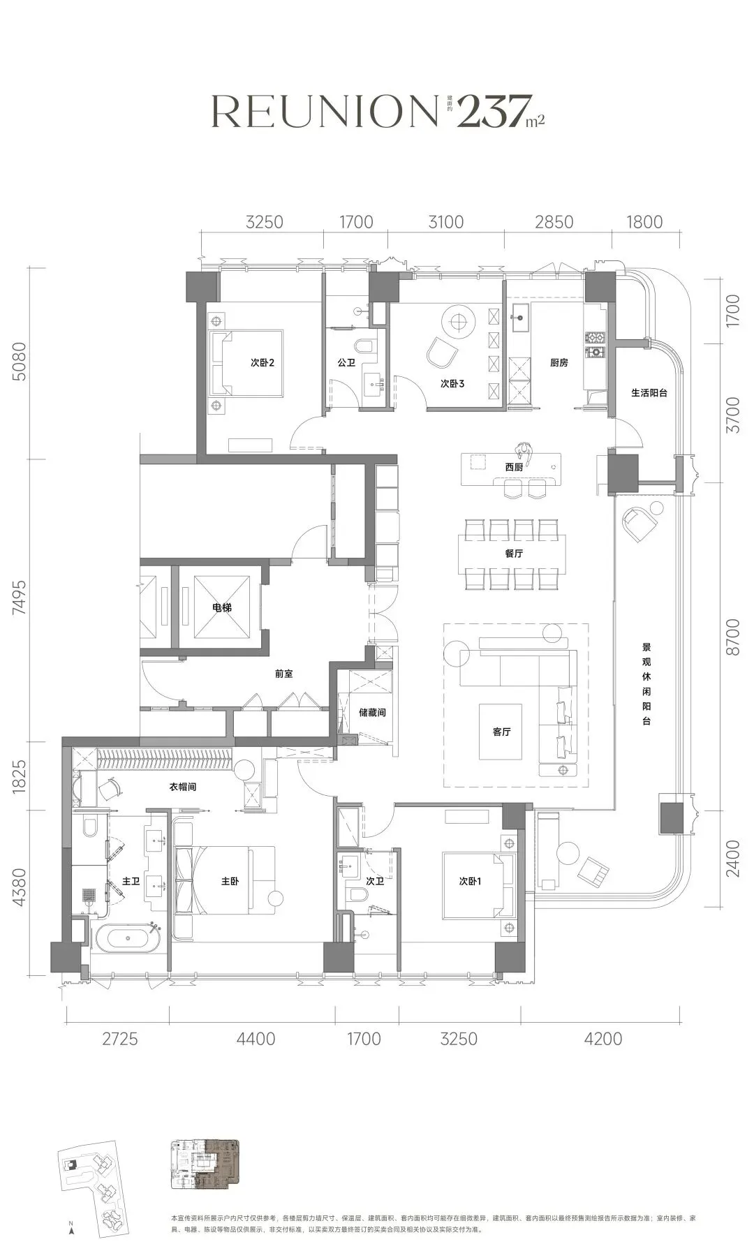 197㎡阳台达到8米,237㎡阳台达到11.8米,更大尺度保证采通风和视野;