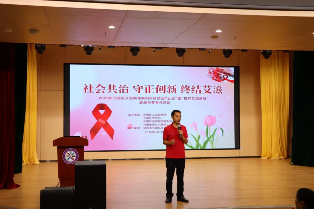 本次活动是光明区2026年艾滋病、性病和丙肝防治“五进”宣传暨“世界艾滋病日”系列科普活动的重要组成部分,由光明区卫生健康局、教育局、疾病预防控制中心及马田街道公共服务办联合主办。
