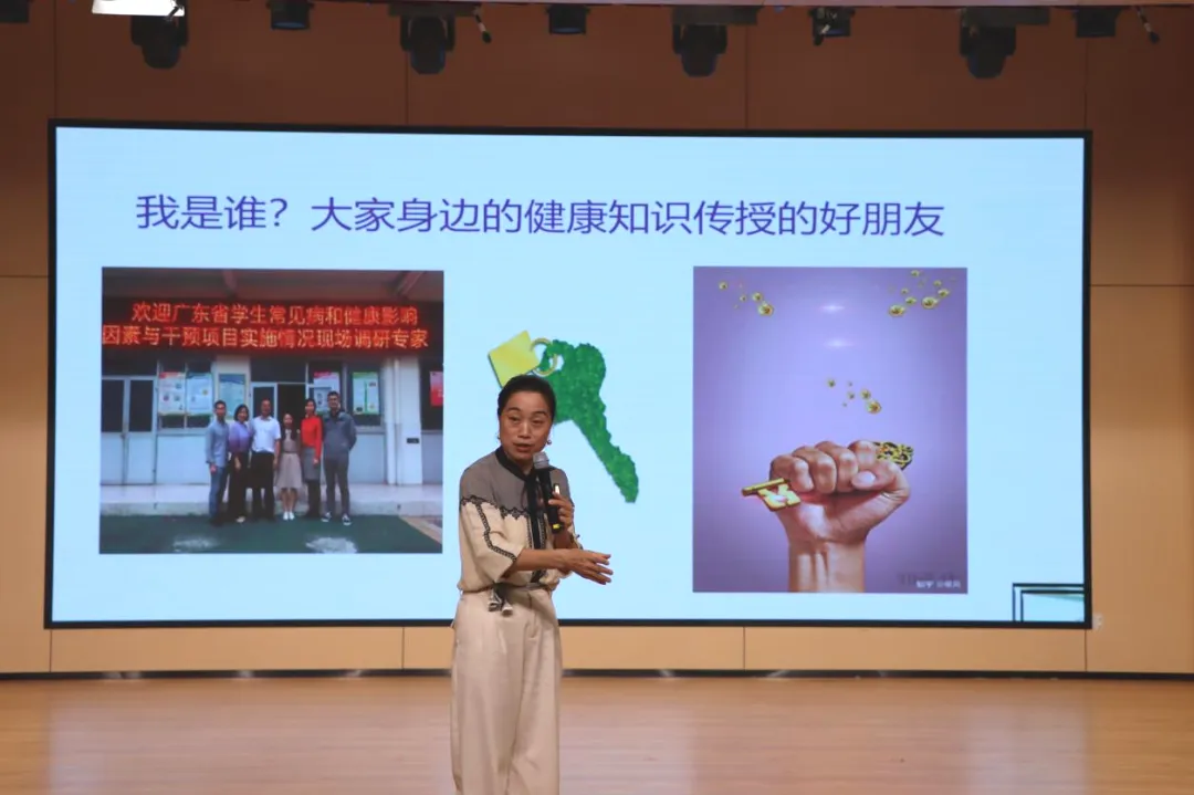 光明区疾控中心性病与艾滋病防治部部长丘天祥、马田街道公共服务办负责同志麦金莲、广东药科大学公共卫生学院副教授张东枚等嘉宾到场,与全校师生共同参与本次健康科普讲堂。