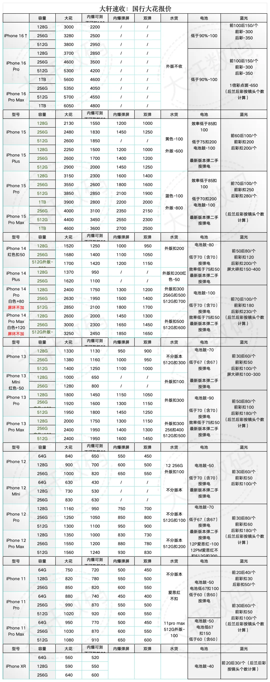深圳大轩速收 苹果 靓机 小花 大花机04-15号回收报价 涨价