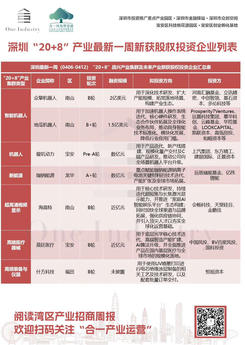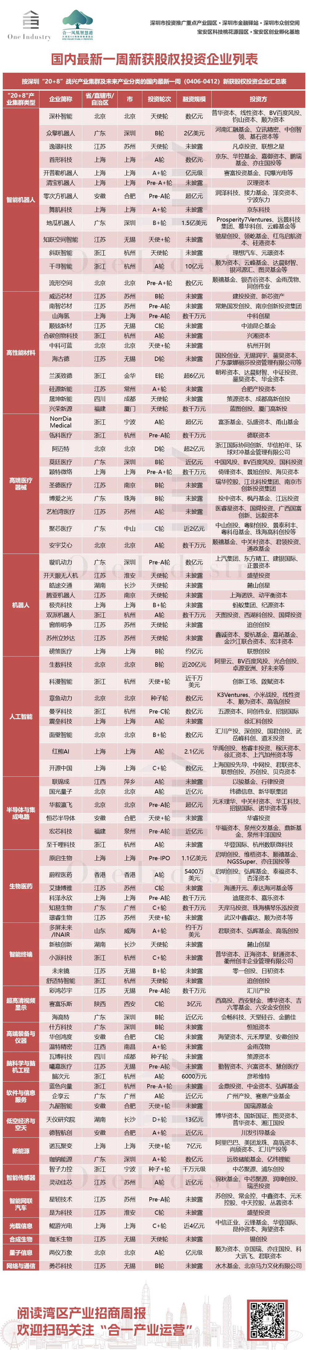 1、深圳最新一周“20+8”战兴产业集群及未来产业新获股权投资企业汇总表