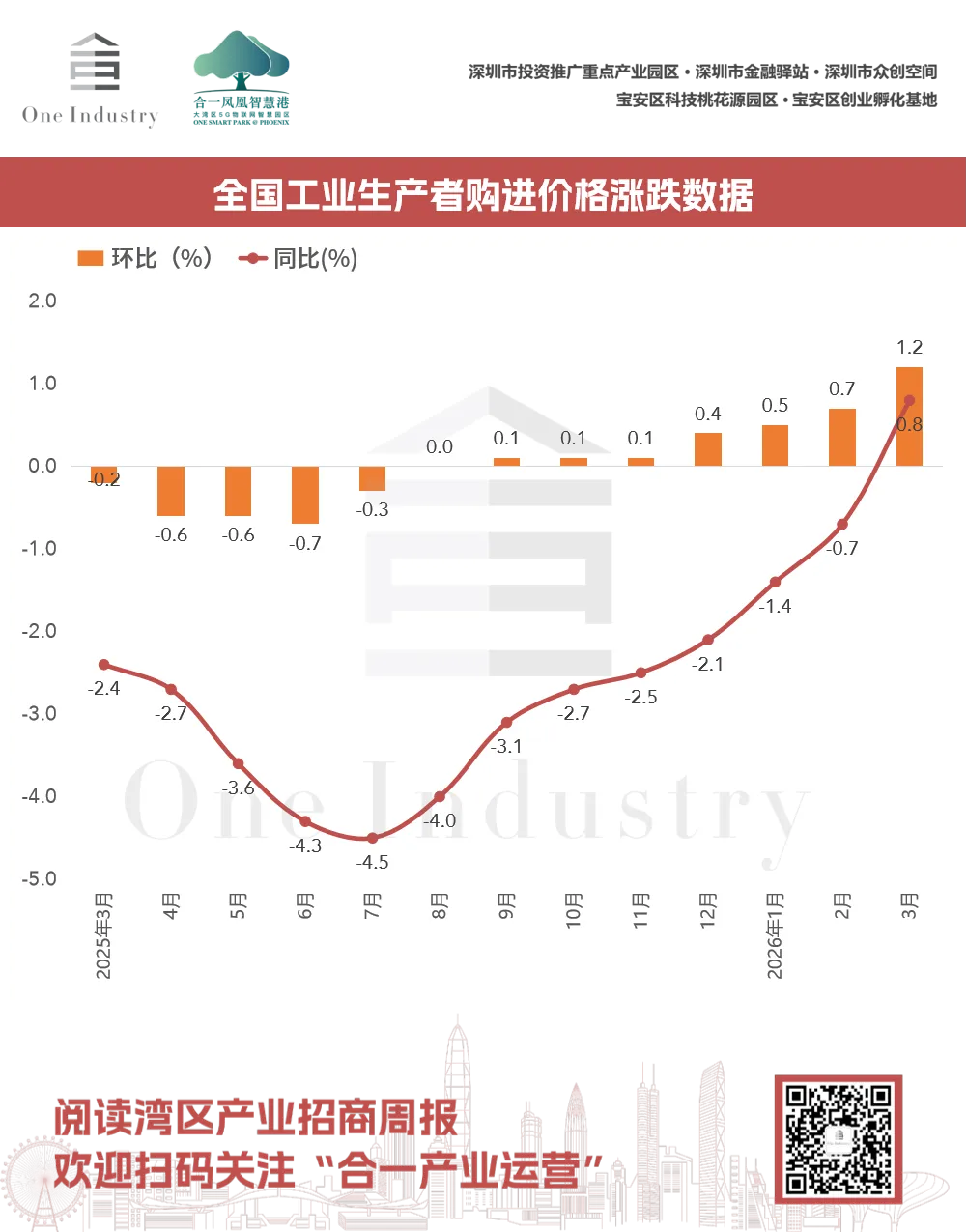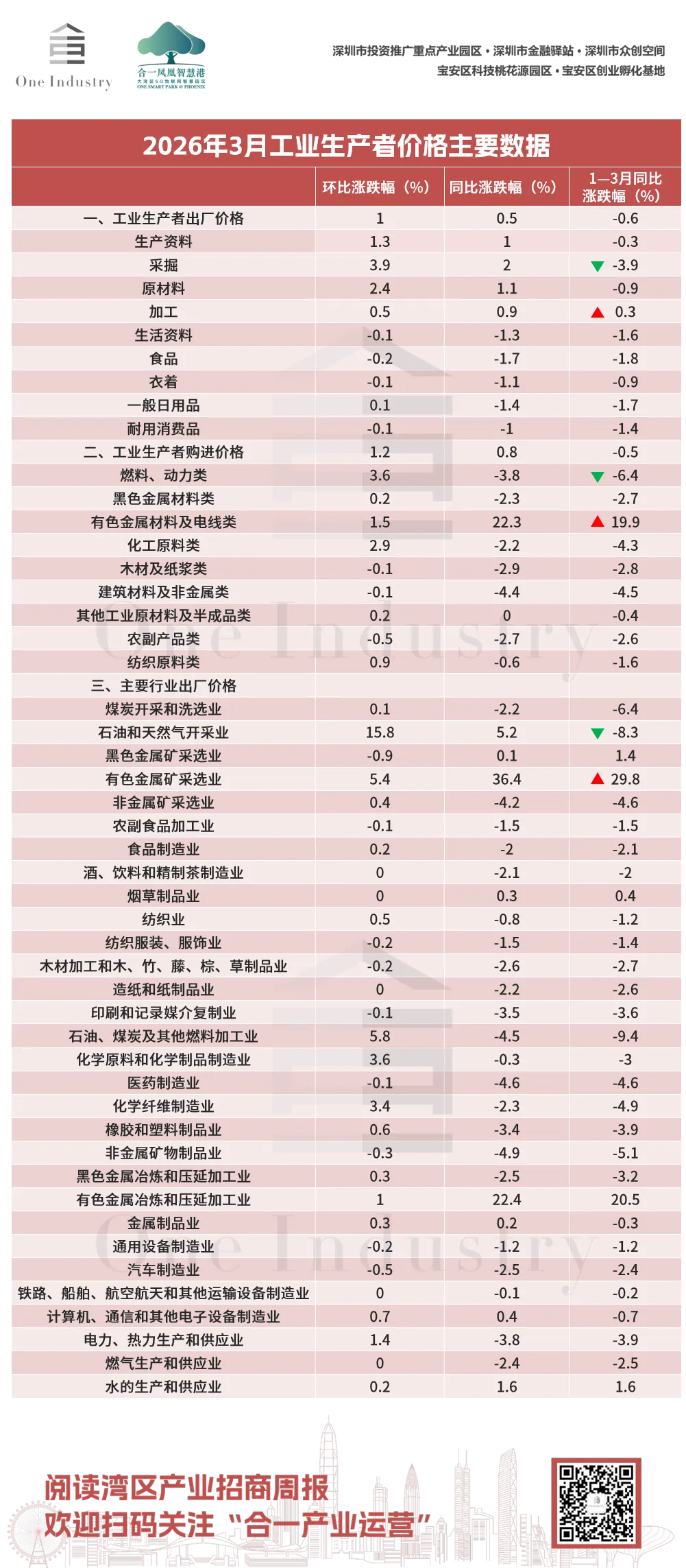 1、工业生产者出厂、购进价格涨跌数据