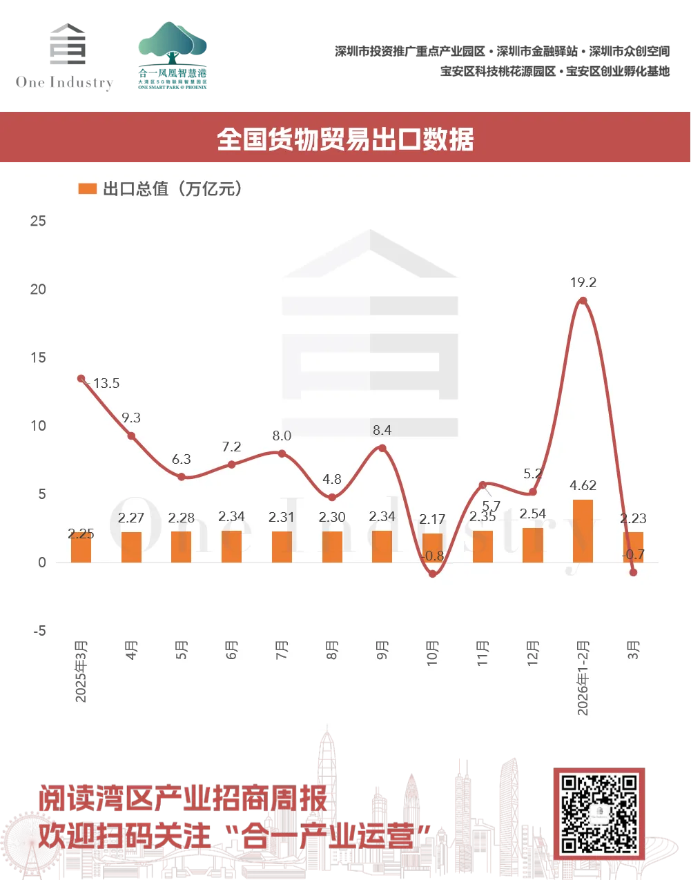 2026年3月,我国货物贸易进出口总值4.10万亿元人民币,同比增长9.2%。其中,出口2.23万亿元,增长-0.7%;进口1.87万亿元,增长23.8%。