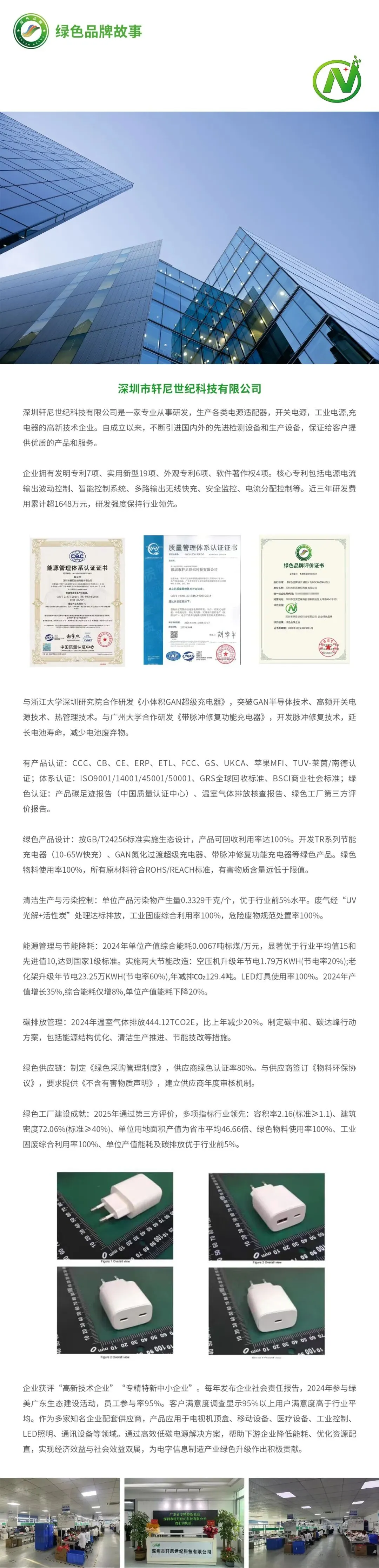 企业获评“高新技术企业”“专精特新中小企业”。每年发布企业社会责任报告,2024年参与绿美广东生态建设活动,员工参与率95%。客户满意度调查显示95%以上用户满意度高于行业平均。作为多家知名企业配套供应商,产品应用于电视机顶盒、移动设备、医疗设备、工业控制、LED照明、通讯设备等领域。通过高效低碳电源解决方案,帮助下游企业降低能耗、优化资源配置,实现经济效益与社会效益双属,为电字信息制造产业绿色升级作出积极贡献。