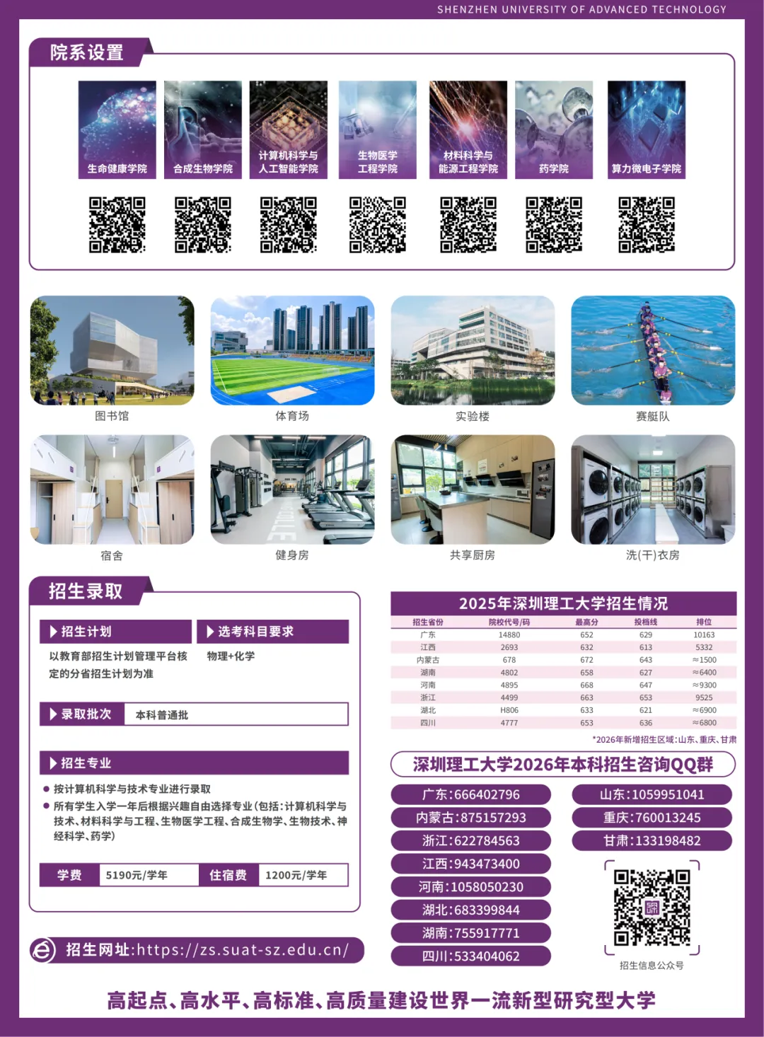 深圳理工凭借作为新型研究型大学的代表,肩负着国家试点推进高等教育综合改革的使命,坚持以改革立校、以创新办学,以创新独特的人才培养模式、优质高水平的科教产教平台资源,在正式成立元年被列入广东省硕士、博士学位授予立项建设单位,2024年首年面向广东省招生喜获优秀生源,生源质量跻身于广东省高校第一方阵;2025年首次出省招生实现开门红,录取考生分数在各省排名均在前列,办学实力和办学模式得到社会各界广泛认可。未来,学校继续在创新办学治校模式上先行先试、探索改革,立志在新时代新征程上勇挑重担、积极作为,锚定创建世界一流新型研究型大学的目标奋进前行。