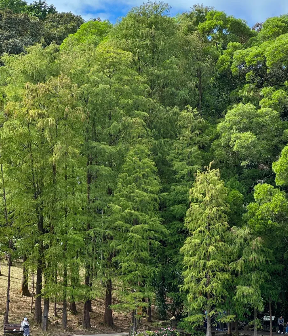 绿道平缓无陡坡,老人小孩都能轻松行走,阳光透过树叶洒下斑驳光影,偶尔遇见骑行者、散步的居民,满是烟火气。