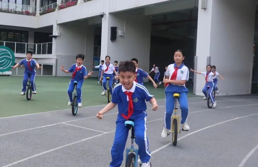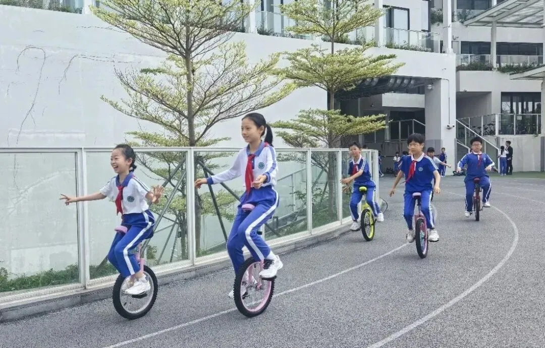 深圳市罗湖未来学校学生在独轮车上找到了“我可以”的信念。