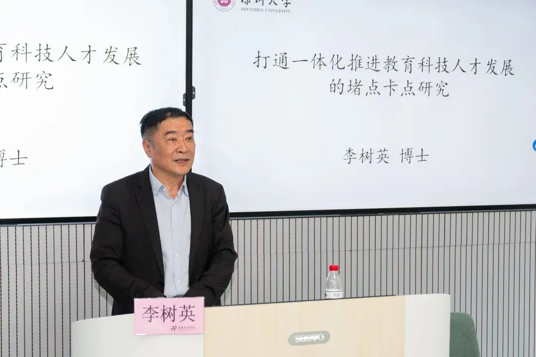 4月13日下午,教师发展中心特邀深圳大学教育学部特聘教授、教育研究院院长、博士生导师、国家级领军人才李树英教授来我校松山湖校区参观考察,并作“打通一体化推进教育科技人才发展的堵点卡点研究”主题讲座。本次讲座由教师发展中心副主任段颖逸主持,广东科技学院副校长毕会东、教师发展中心主任曾祥辉、质量监控办公室主任邱林润出席讲座。