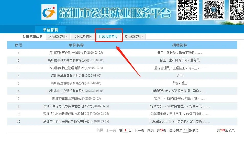选择“网络招聘岗位”