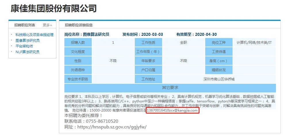 岗位信息中的邮箱地址