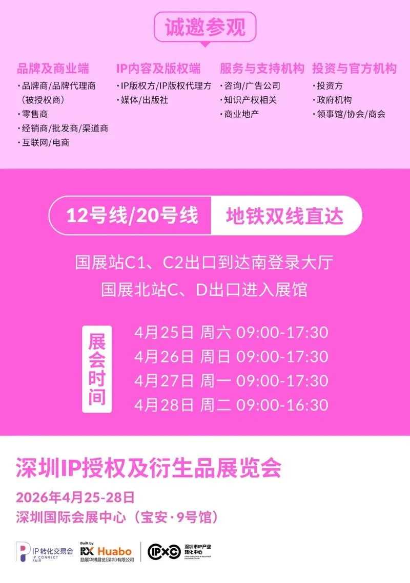 百万级SKU!2026深圳IP授权展4月25-28日连开4天,潮流新品抢先看!一键预登记逛展→