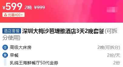 >深圳大梅沙芭堤雅酒店,3天2晚度假 五一可用