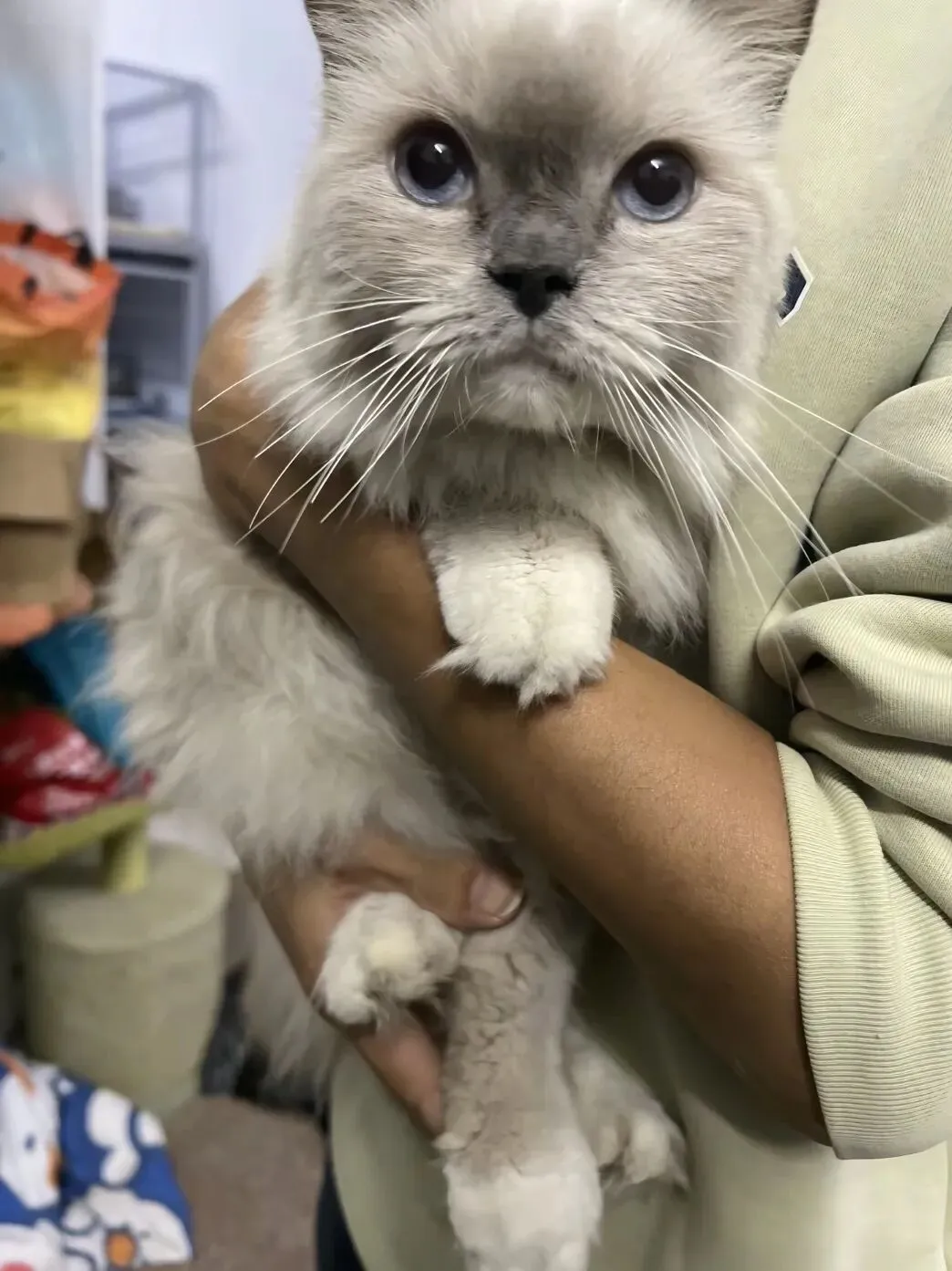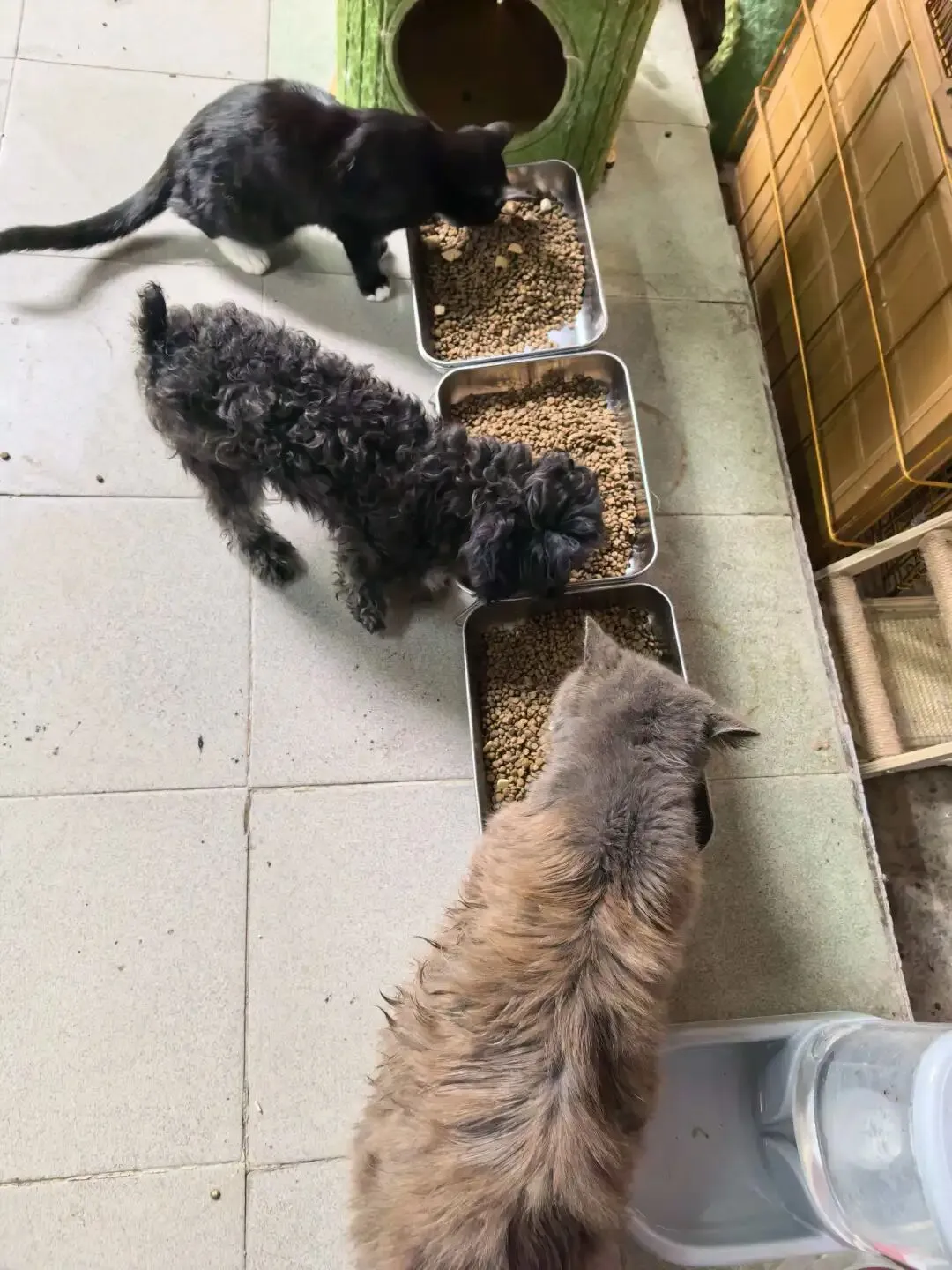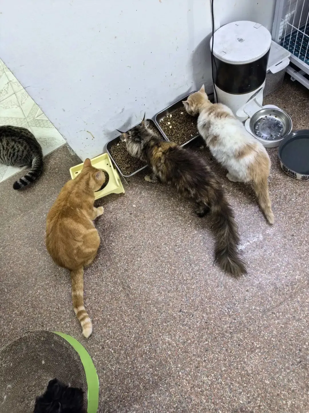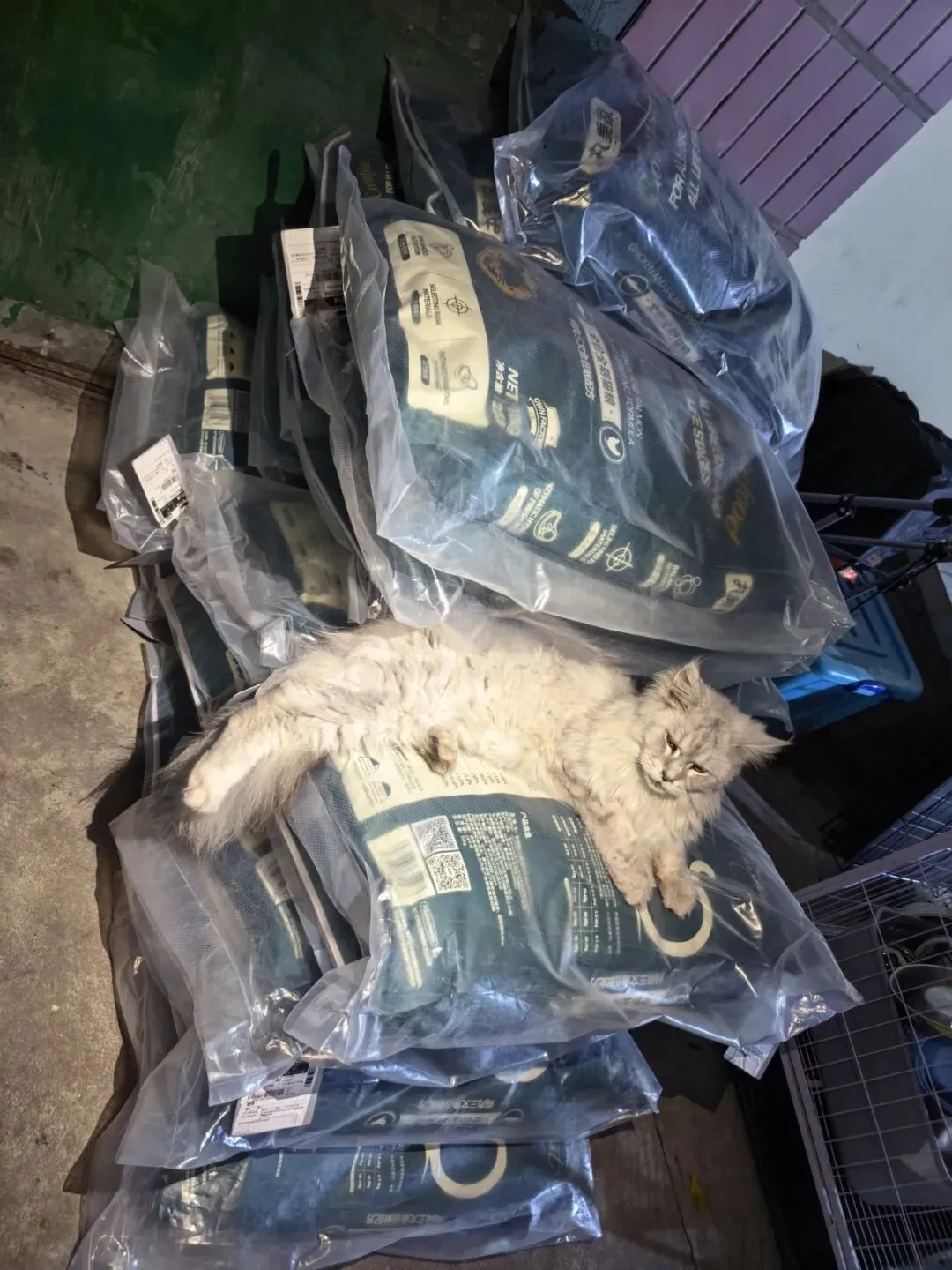 在义工和爱心人士的协助下,这批猫粮顺利抵达小院。卸运、收纳…大家分工协作,很快就将一袋袋沉甸甸的猫粮搬进了储物间。当把食粮打开混着冻干送到它们面前,看着毛孩子们狼吞虎咽的样子,在场的每一个人心里都泛起了酸。