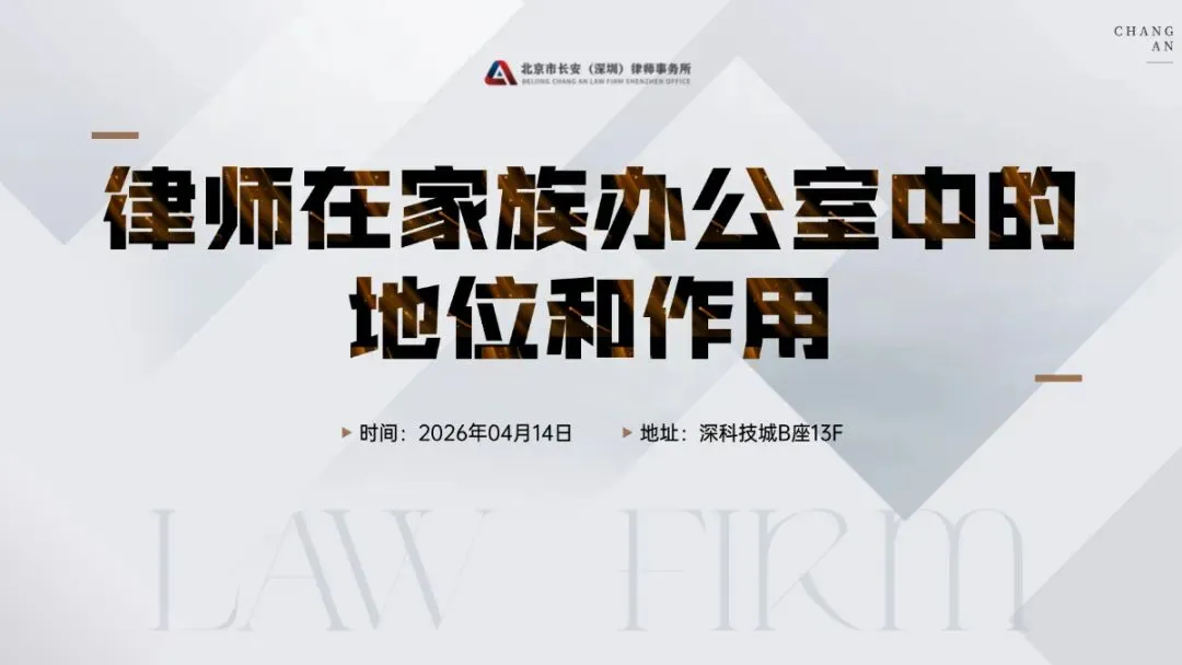 本次培训务实高效、干货满满,进一步明晰了律师在家办领域的核心价值与执业方向。家族办公室是高端法律服务的黄金赛道,未来长安深圳律所将持续推出家族信托、保险金信托、跨境传承、税务合规等系列培训,搭建专业交流平台,助力律师深耕专业、共建能力、共拓业务,为高净值客户与家族企业提供更全面、更专业的财富法律服务。