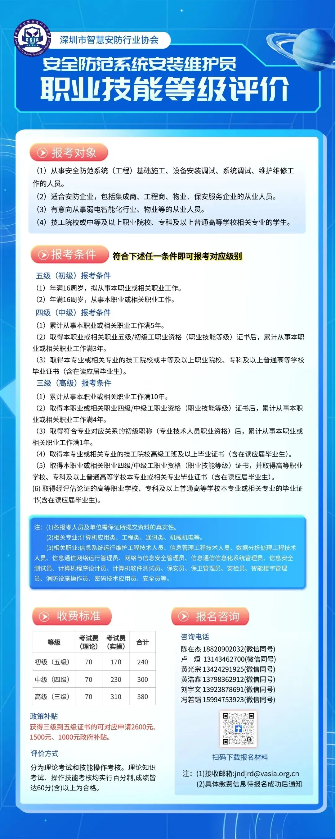 深圳市智慧安防行业协会关于开展2026年第五期安全防范系统安装维护员职业技能等级认定考试的通知
