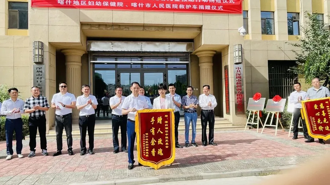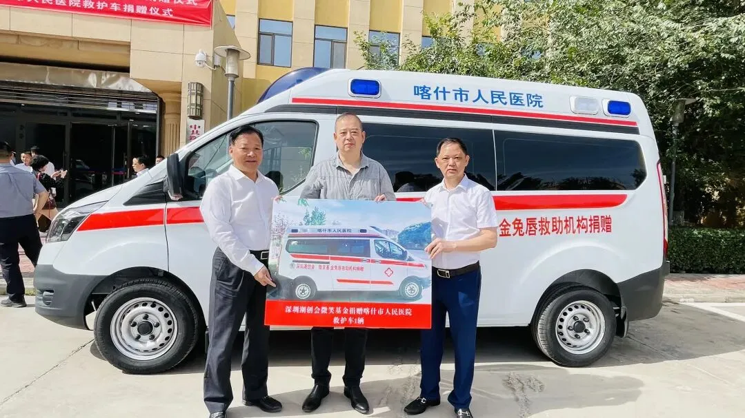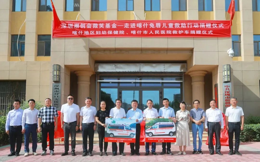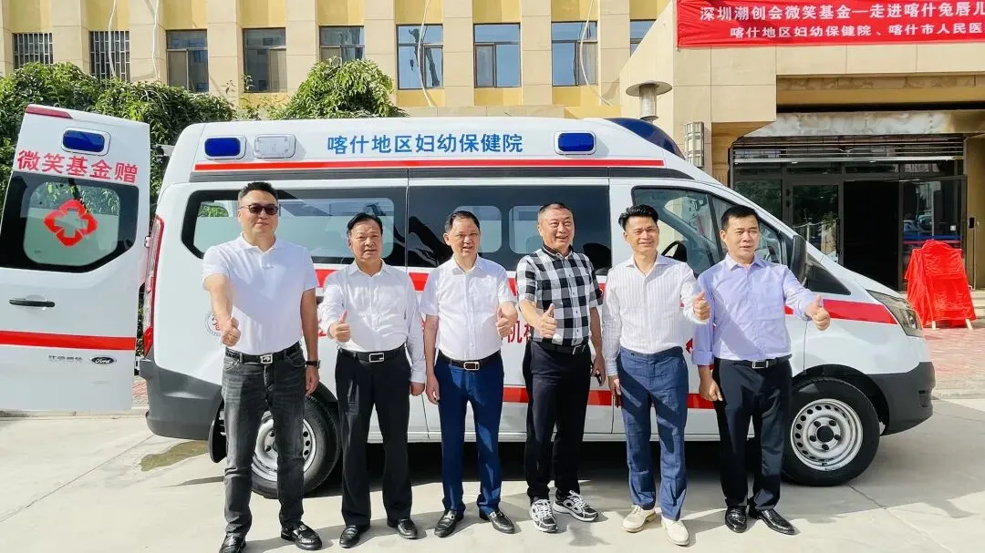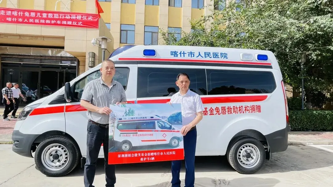 2022年6月19日,深圳潮创会微笑基金在喀什深圳援疆前方指挥部举行救护车捐赠仪式,捐赠二辆救护车助力喀什地区妇幼保健院、喀什市人民医院疫情防控!