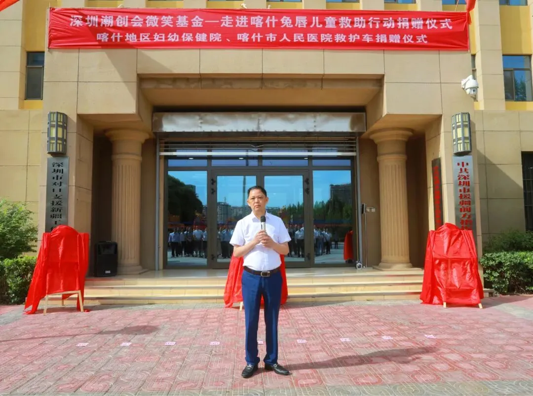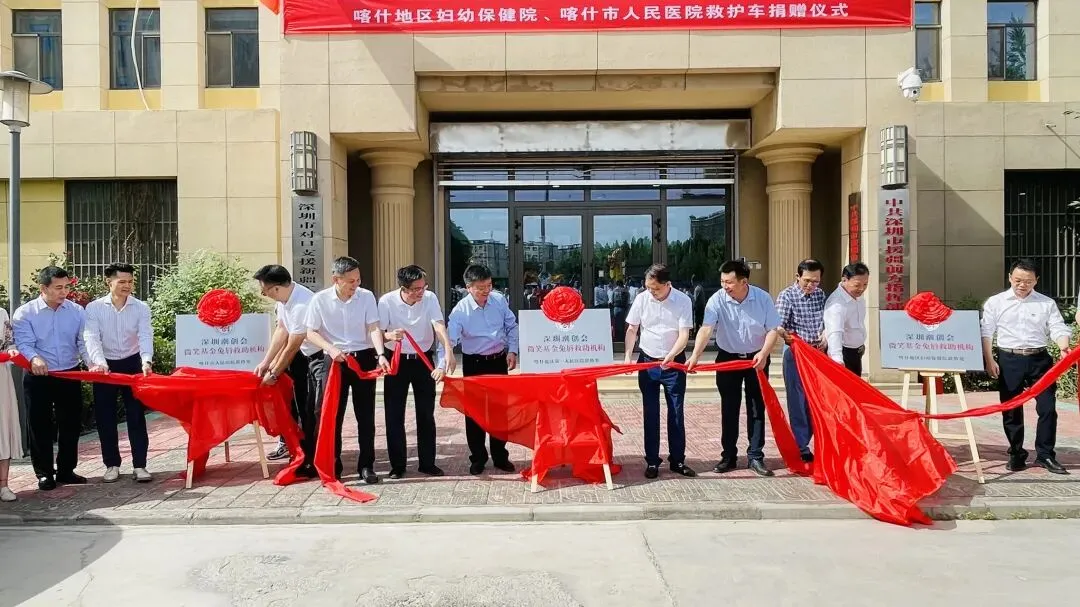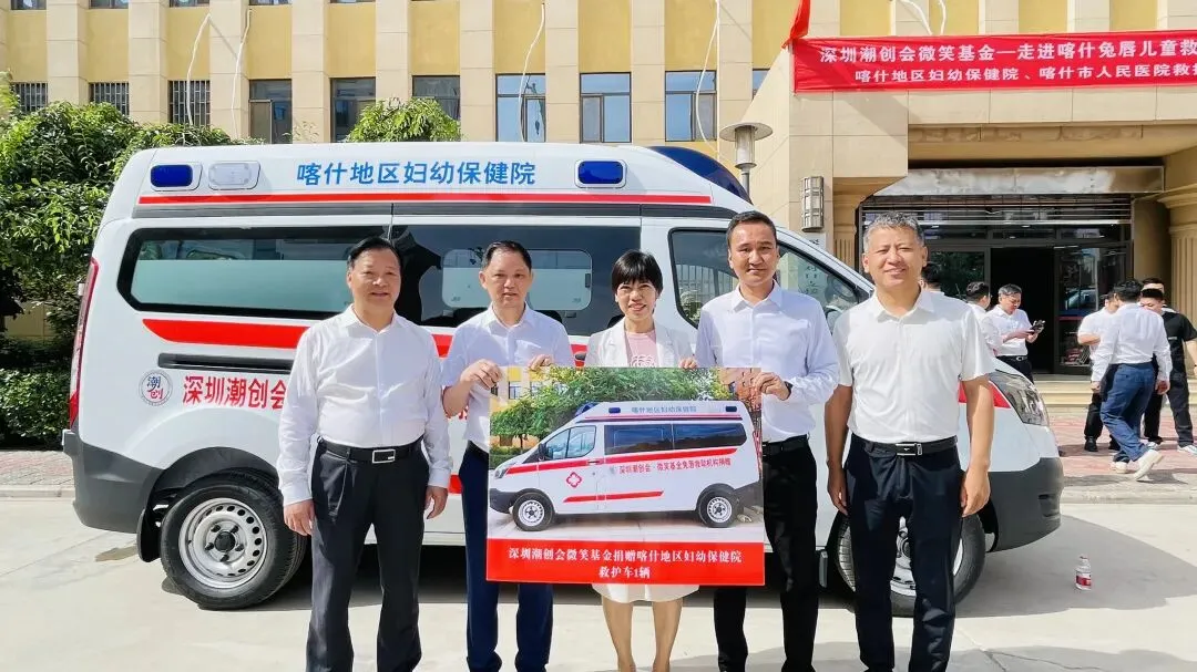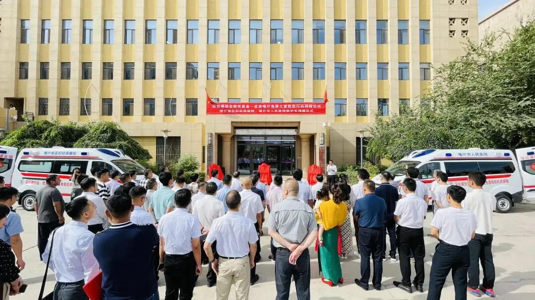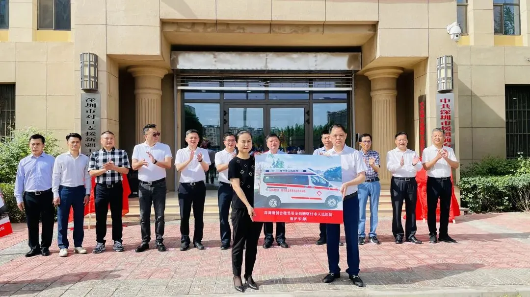 2022年6月19日,深圳潮创会微笑基金在喀什深圳援疆前方指挥部举行救护车捐赠仪式,捐赠二辆救护车助力喀什地区妇幼保健院、喀什市人民医院疫情防控!