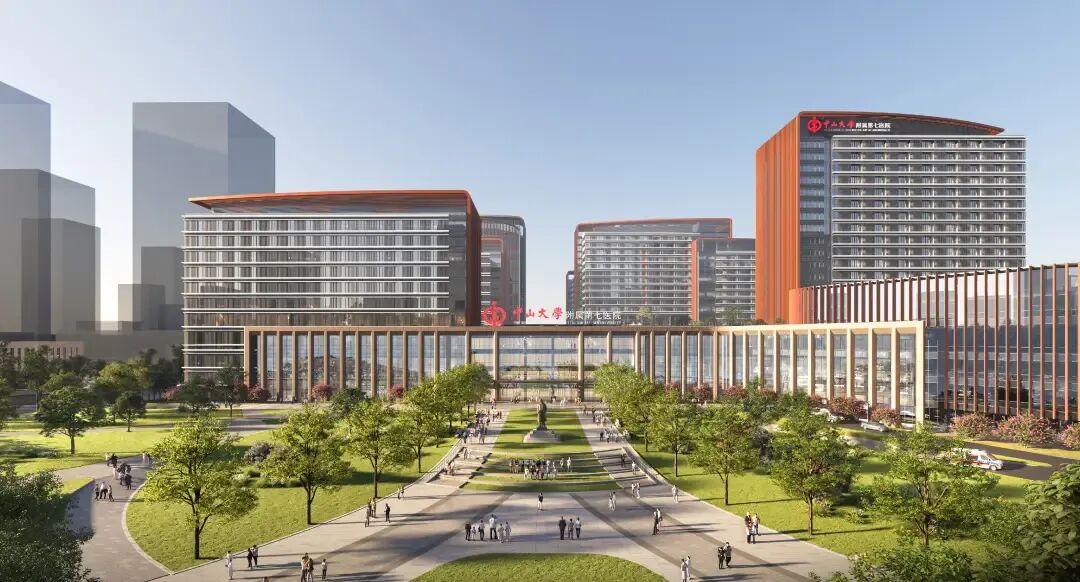 中山大学附属第七医院是深圳市与中山大学“市校战略合作”项目,于2018年5月11日正式开放运营,一期建设开放床位800张。开业4年2个月,顺利通过“三甲”评审,创全国新建医院创“三甲”纪录。