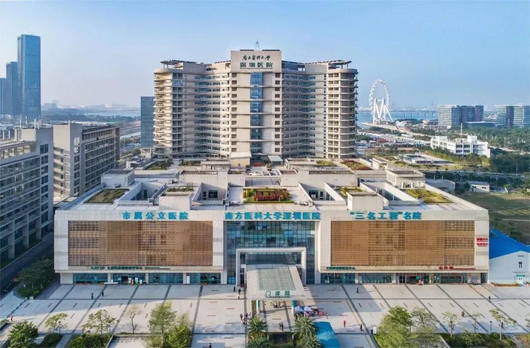 南方医科大学深圳医院是深圳“三名工程”引进的首个落地“名院”项目,2015年12月开业,是深圳市政府与南方医科大学(原第一军医大学)合作打造的市属综合性公立三级甲等医院。医院占地8.2万㎡,总规划床位2500张。一期已展开床位超过1000张,二期工程已于2023年启动,将新增1500张床位。
