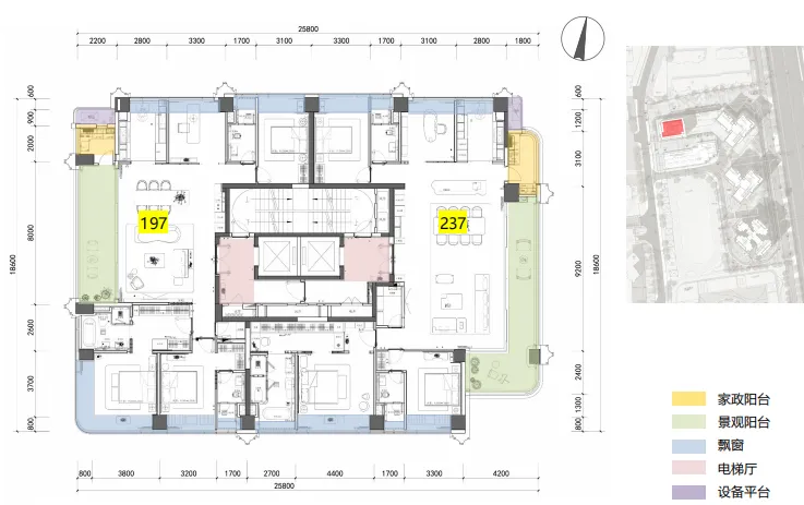 197㎡阳台达到8米,237㎡阳台达到11.8米,更大尺度保证采通风和视野;