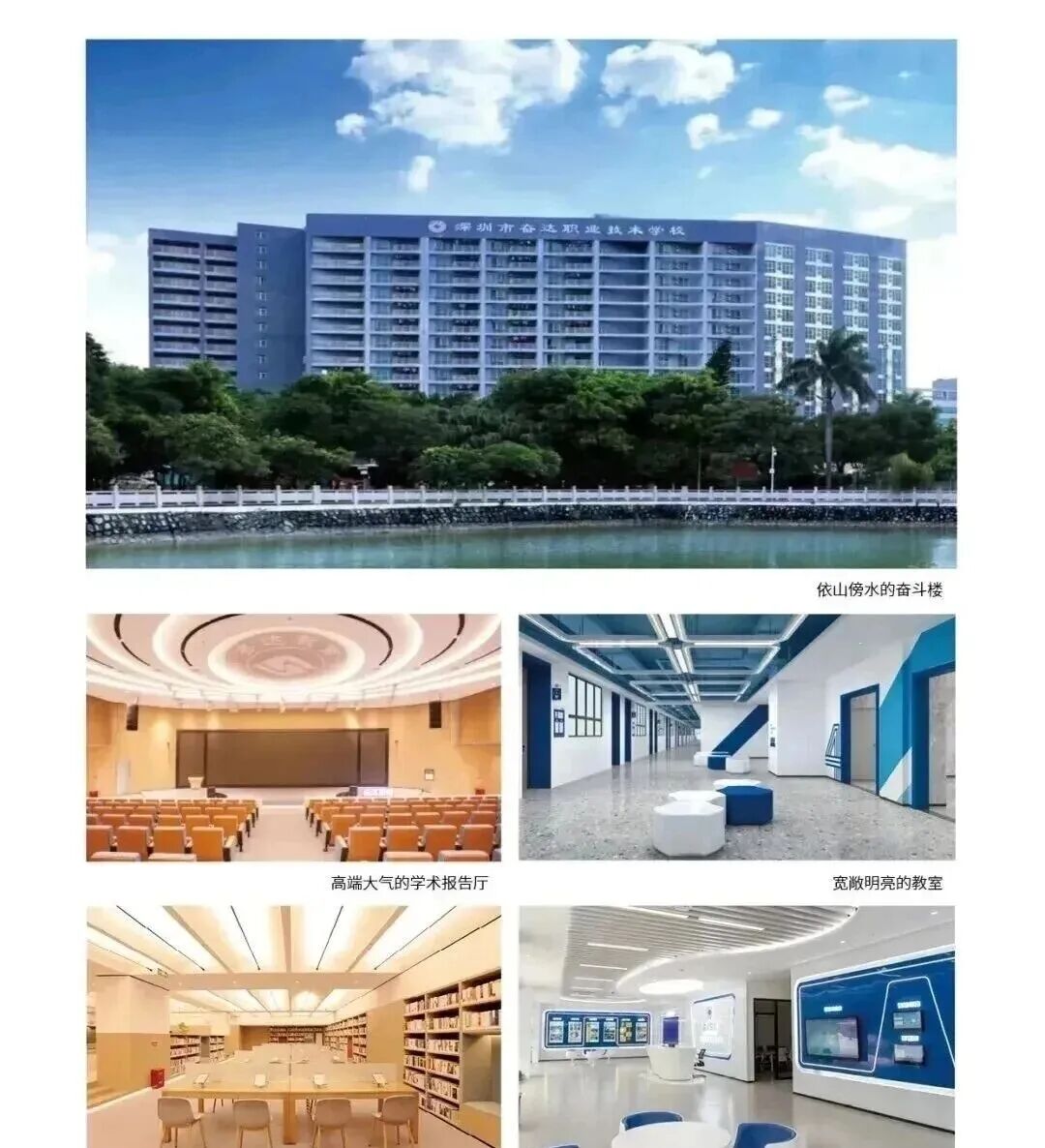 学校位于深圳市宝安区石岩洲石路奋达科技园内,校园占地面积13万6千多平方米。学校在兴教之路上始终从支撑经济社会发展和培养满足现代化建设所需人才角度出发,创新职业教育模式,充分发挥职业教育资源优势,在教育教学质量、师资队伍建设、学生升学就业等方面均取得了显著成绩。