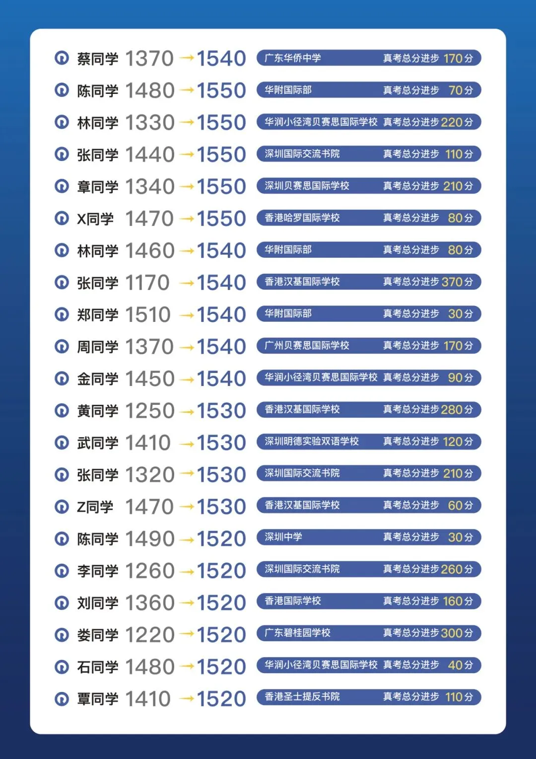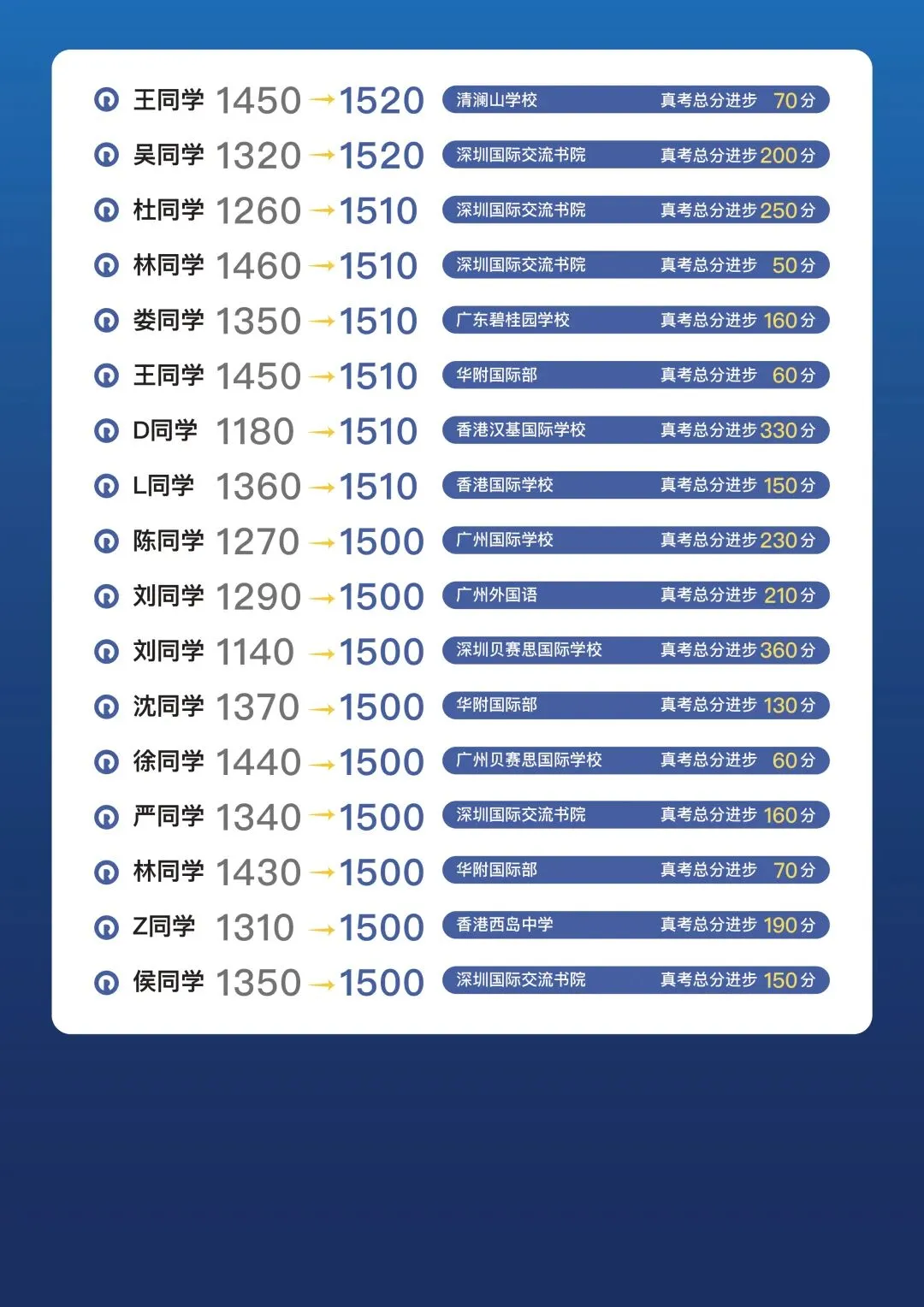 SAT1500+ 学员高分榜