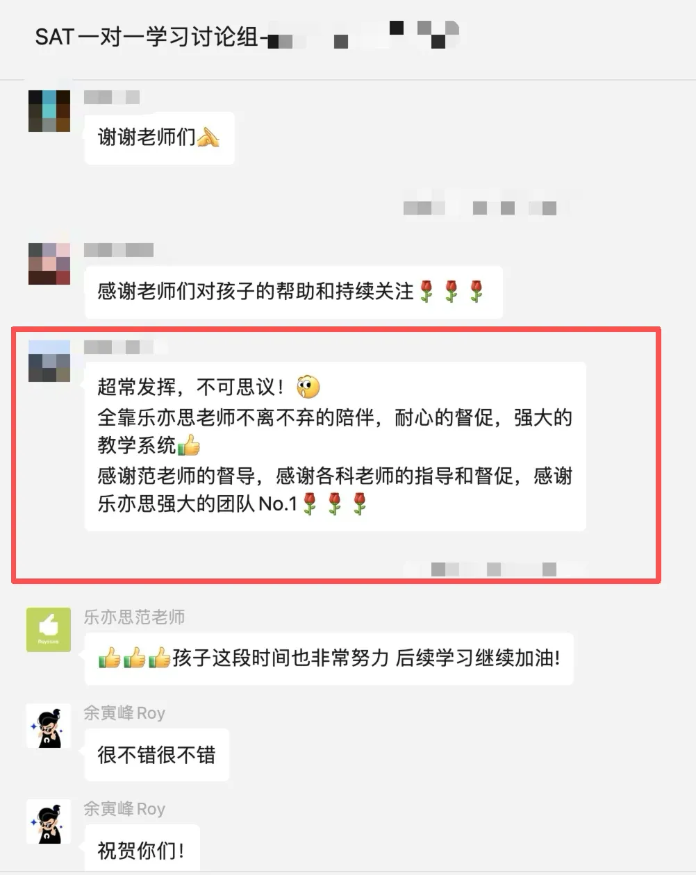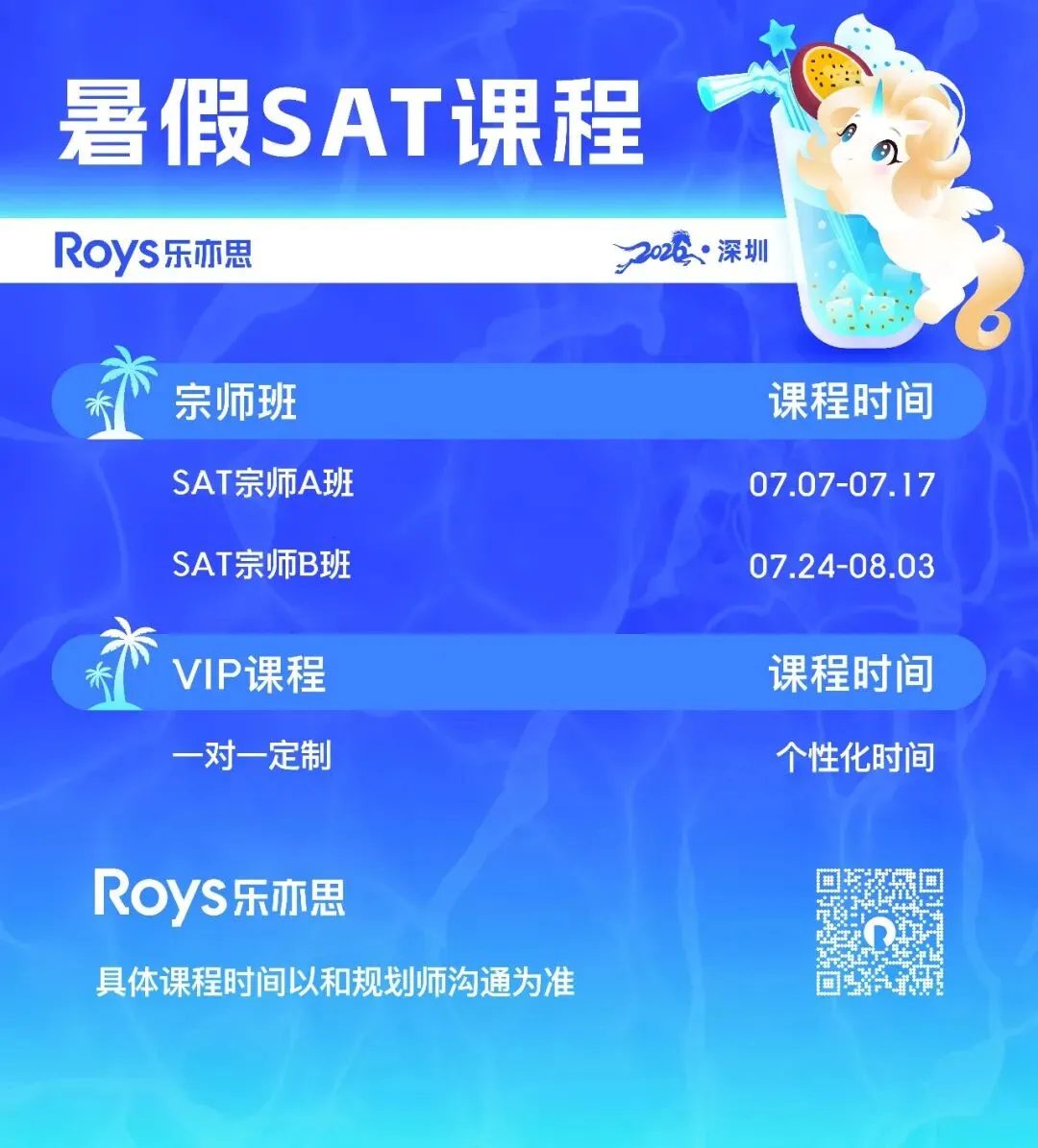 宗师级名师天团, 深耕SAT教学, 拥有千位数SAT1500+学员提分经验, 深谙命题规律;专属定制提分体系, 从强化到冲刺拔高, 全程闭环教学;全程个性化提分方案,13+小时陪伴监督, 从课前预习, 课中管理, 到课后跟进全覆盖;独家Royspace答题系统, 题库高达14000+, 全真模拟, 助力高分.一路走来, 最珍贵的莫过于各位家长与学员的信任与支持...每次出分都能收到大家发自肺腑的认可、脱口而出的称赞, 这些暖心的好评, 不仅是对我们教学成功的最好反馈, 也是我们继续前行的动力!■ 深圳家长三个孩子依次选择乐亦思, 对我们专业实力高度认可!乐亦思SAT · 暑假
