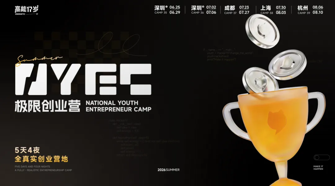 NYEC(National Youth Entrepreneur Camp) ,全称“高能17岁·极限创业营”,是一项专为9-12年全学科学生设计的线下创业实战活动。