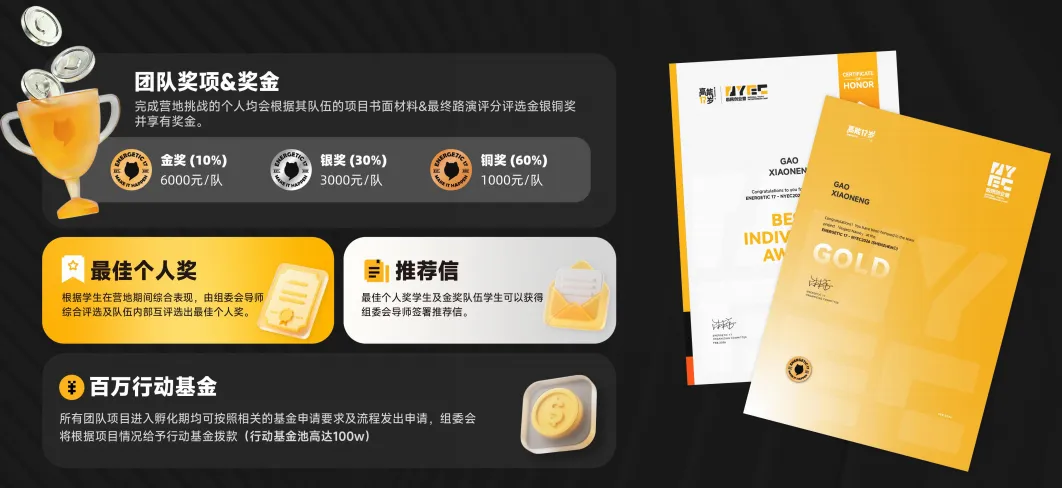 推荐信:金奖团队及个人奖获得者,可获得组委会导师(行业大咖)签署的推荐信。