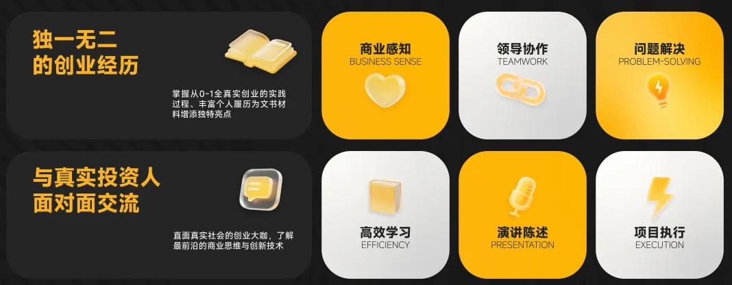 学生在营地中完成的商业计划书、用户调研数据、产品DEMO原型以及最终路演实录,天然适配哥大MEC、CTB、康莱德、DC钻石挑战赛、BPA等国际竞赛赛道,仅需针对性调整即可转化为高竞争力参赛作品。