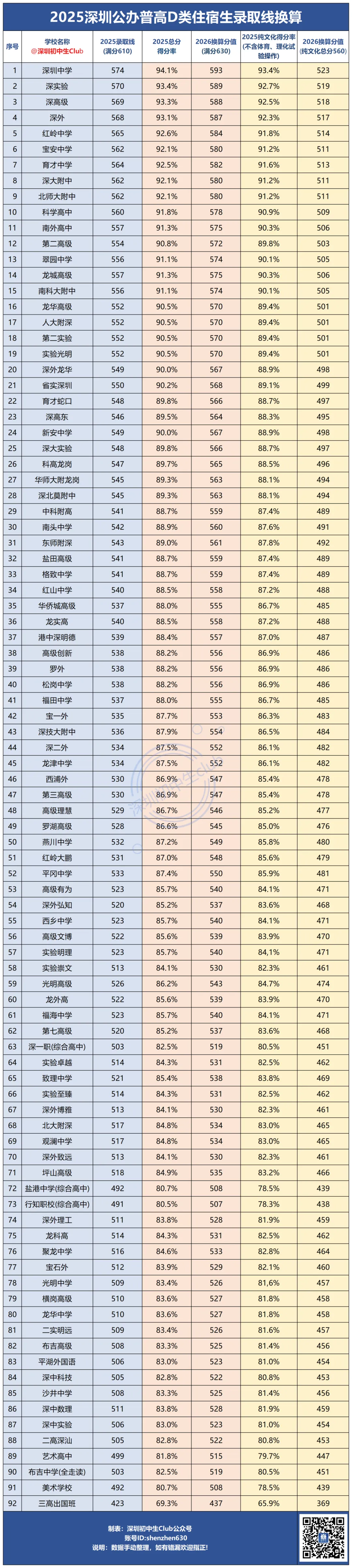 纯分化得分率93.4%,简单理解就是深户考生2025年裸考上深中住宿学位,100分的试卷要拿到93.4分以上,不考虑其他影响因素的情况下,2026年中考生也可以大致参考这个标准去定目标。