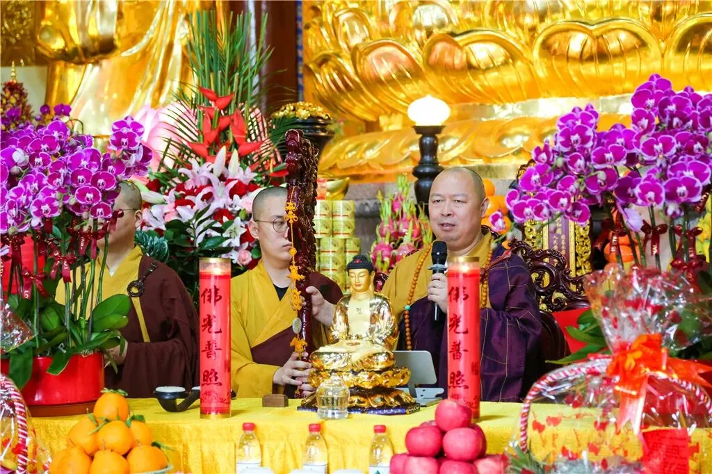 法会期间,弘法寺方丈印顺法师在大雄宝殿为大众慈悲开示,表示,此次清明水陆大斋法会,既是对本老的深切缅怀,也是对本老精神的践行与传承,报恩思亲,冥阳两利,慈悲普度。
