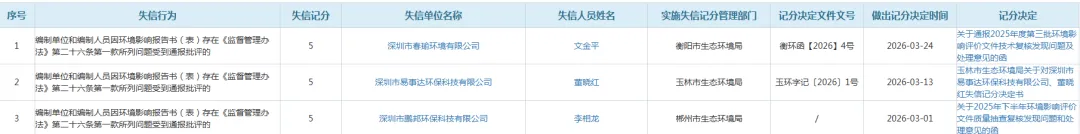 >2026年3月份深圳环评单位被通报名单