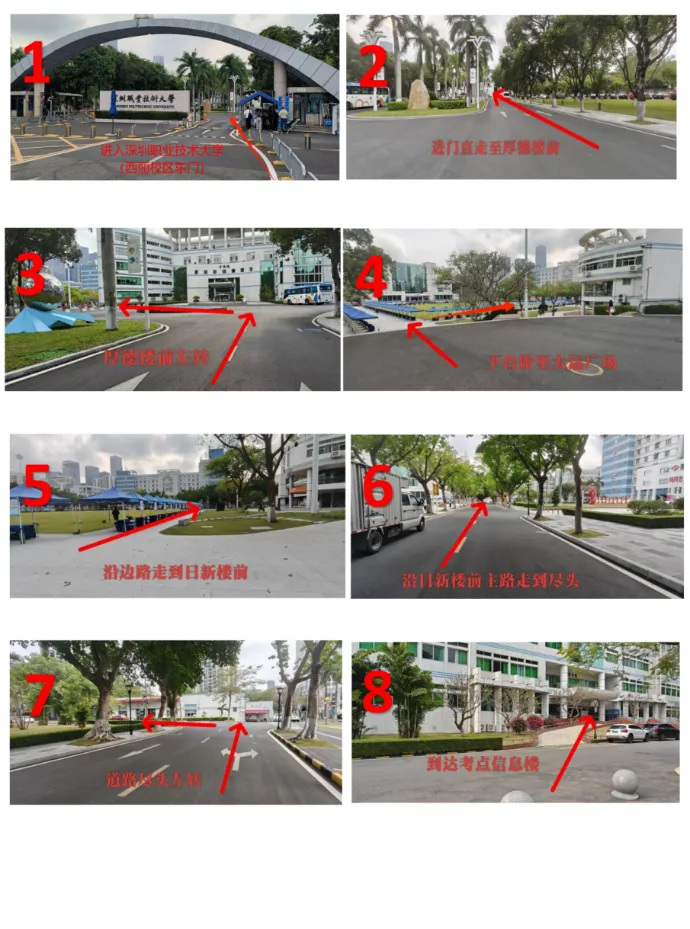 二、考试时间及地点具体考试场次、考点地址以准考证信息为准,请考生提前核对,并确认本人考试时段。考场路线指引请参见附件2考场路线指引三、考生入场须知1.考生须携带本人有效居民身份证、准考证及黑色签字笔;2.考生凭身份证原件和准考证入校;3.考前2小时内须完成扫码签到;4.开考前30分钟将播放考试系统操作的注意事项,请提前入场观看。5.开考30分钟后禁止入场,迟到考生视为自动放弃。四、其他事项