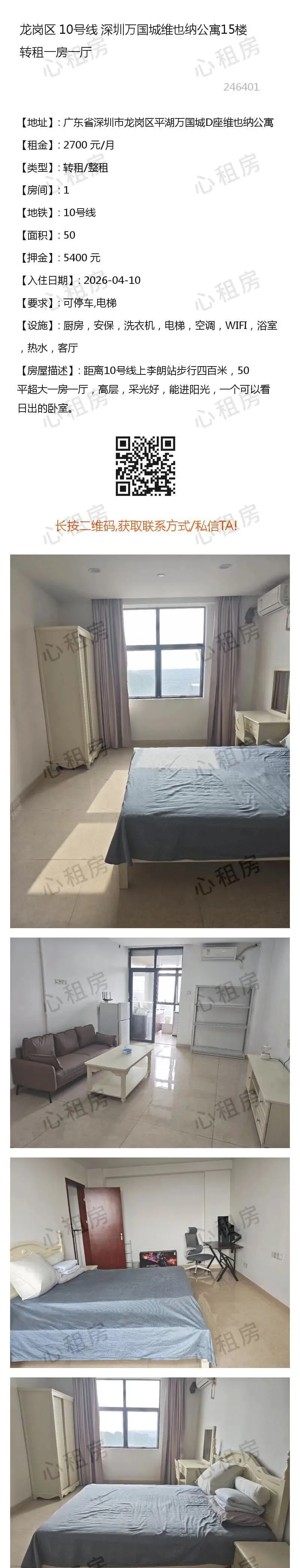 深圳租房>>龙岗区10号线深圳万国城维也纳公寓15楼转租一房一厅2700元/月