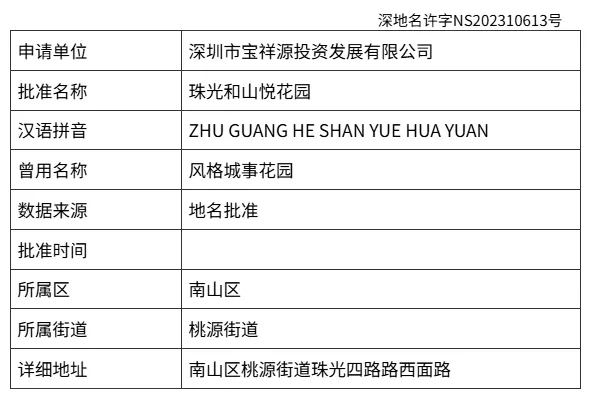去年7月,项目还进行过更名,由原来的“风格城事花园”变更为“珠光和山悦花园”。