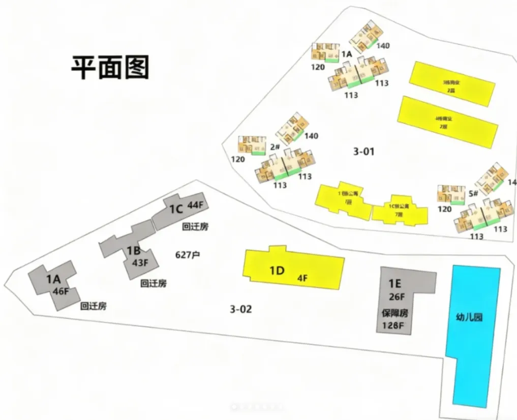 项目分两个地块,03-01地块为住宅和商业、公寓,03-02地块主要为保障房、回迁房和幼儿园。