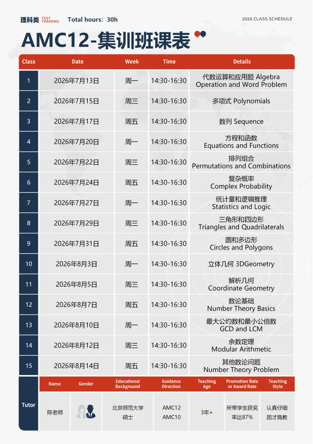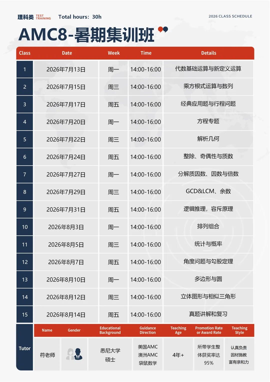 AMC10、12长线辅导:系统搭建数理推理底层能力,✔打好基础后,秋季只需刷题+冲刺,冲AMC10/12高分段。