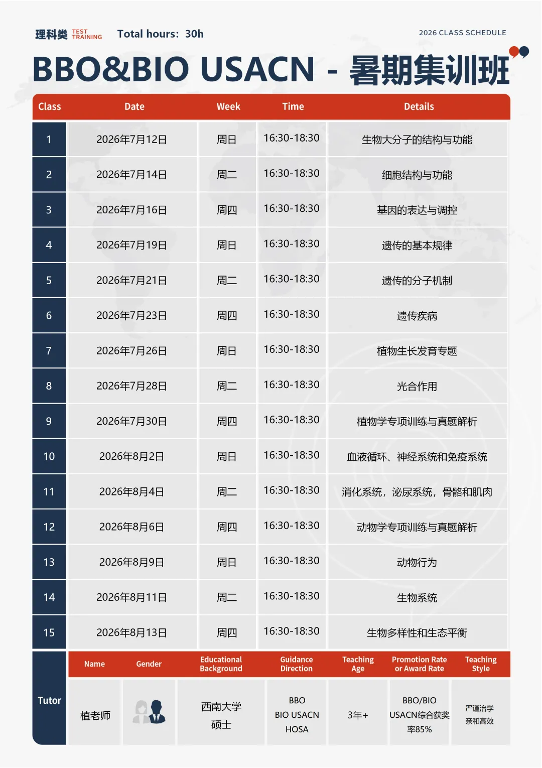 USABO(BIO-USACN)&BBO暑期集训班任务: