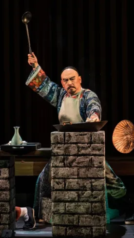 丁宝桢第一次登场就在舞台上真炒宫保鸡丁,那股麻辣鲜香直冲脑门!