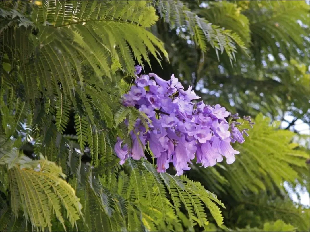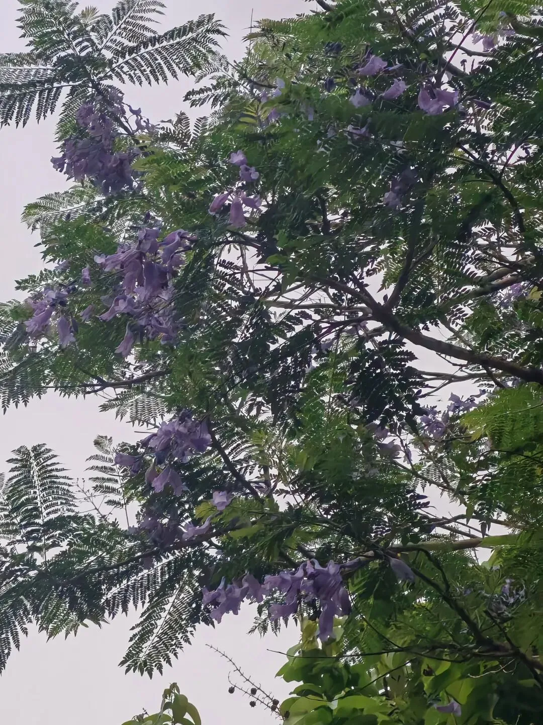 整棵树看上去,像是天空中飘着密密的绿色羽毛🪶,而零星垂挂着的花朵,也似乎把天空染成了星星点点的紫色。