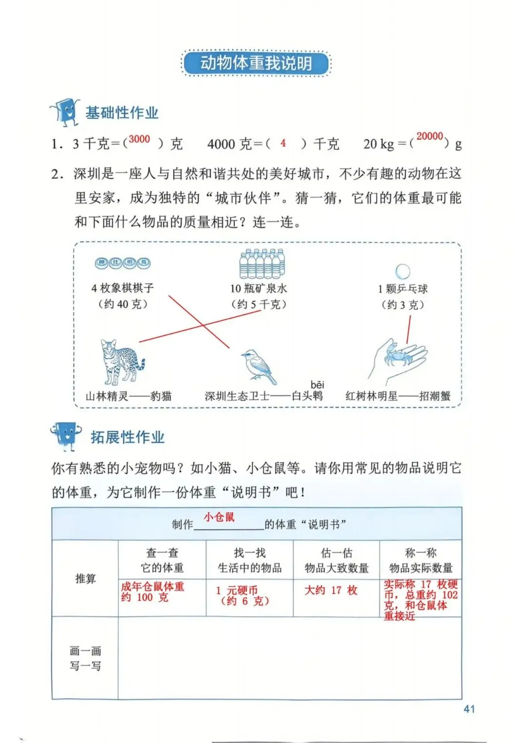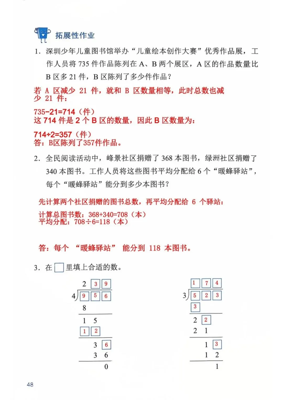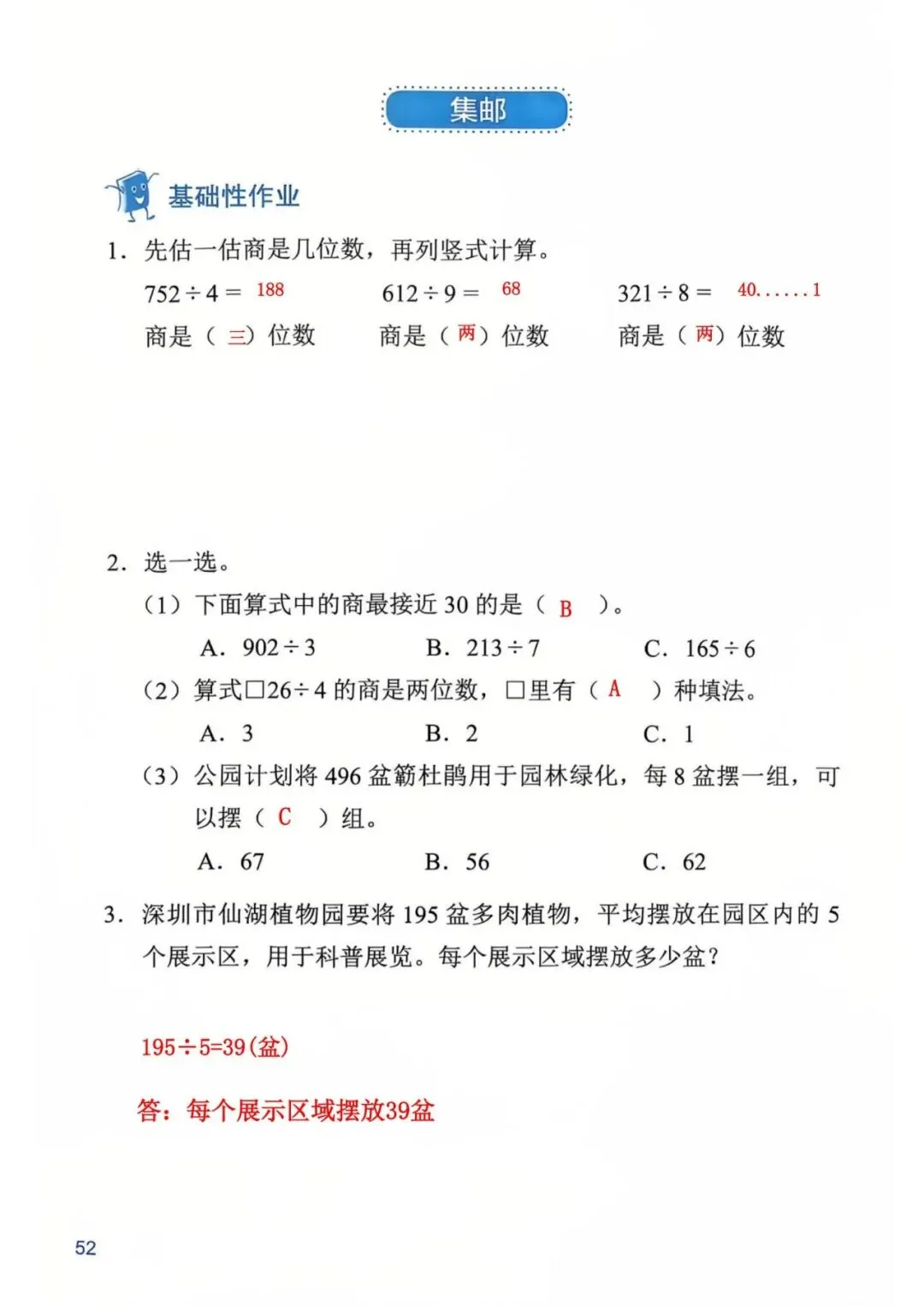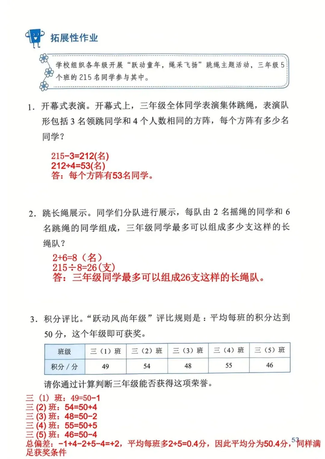 深圳数学三年级下册知识与能力训练答案A版53页(持续更新,关注)