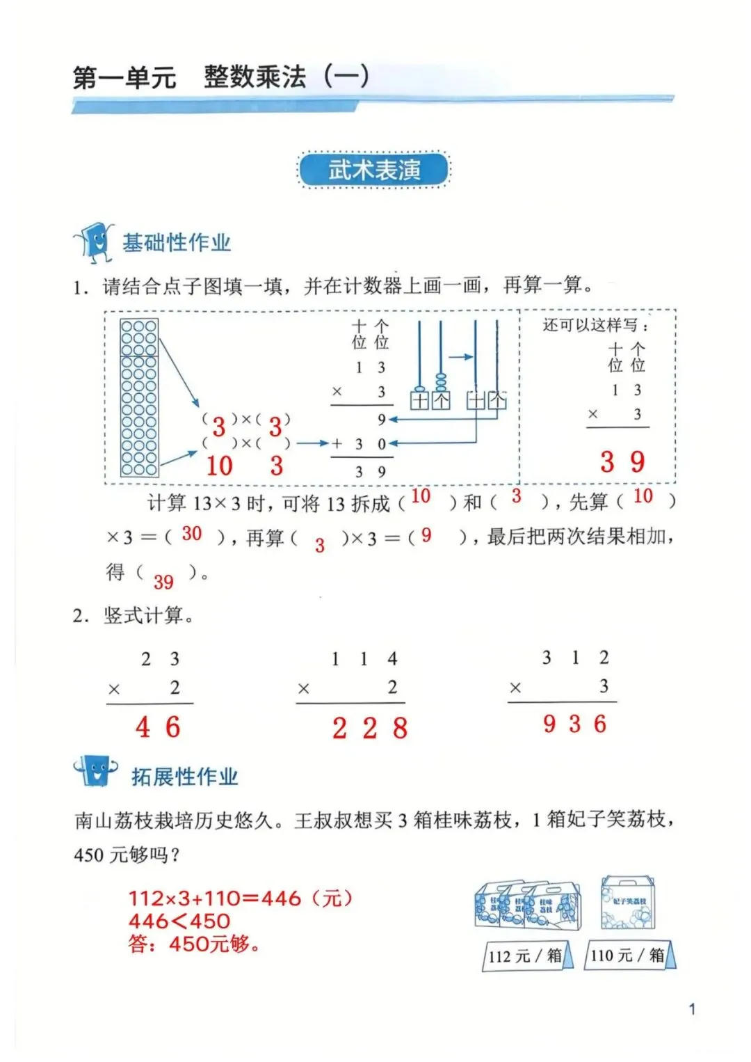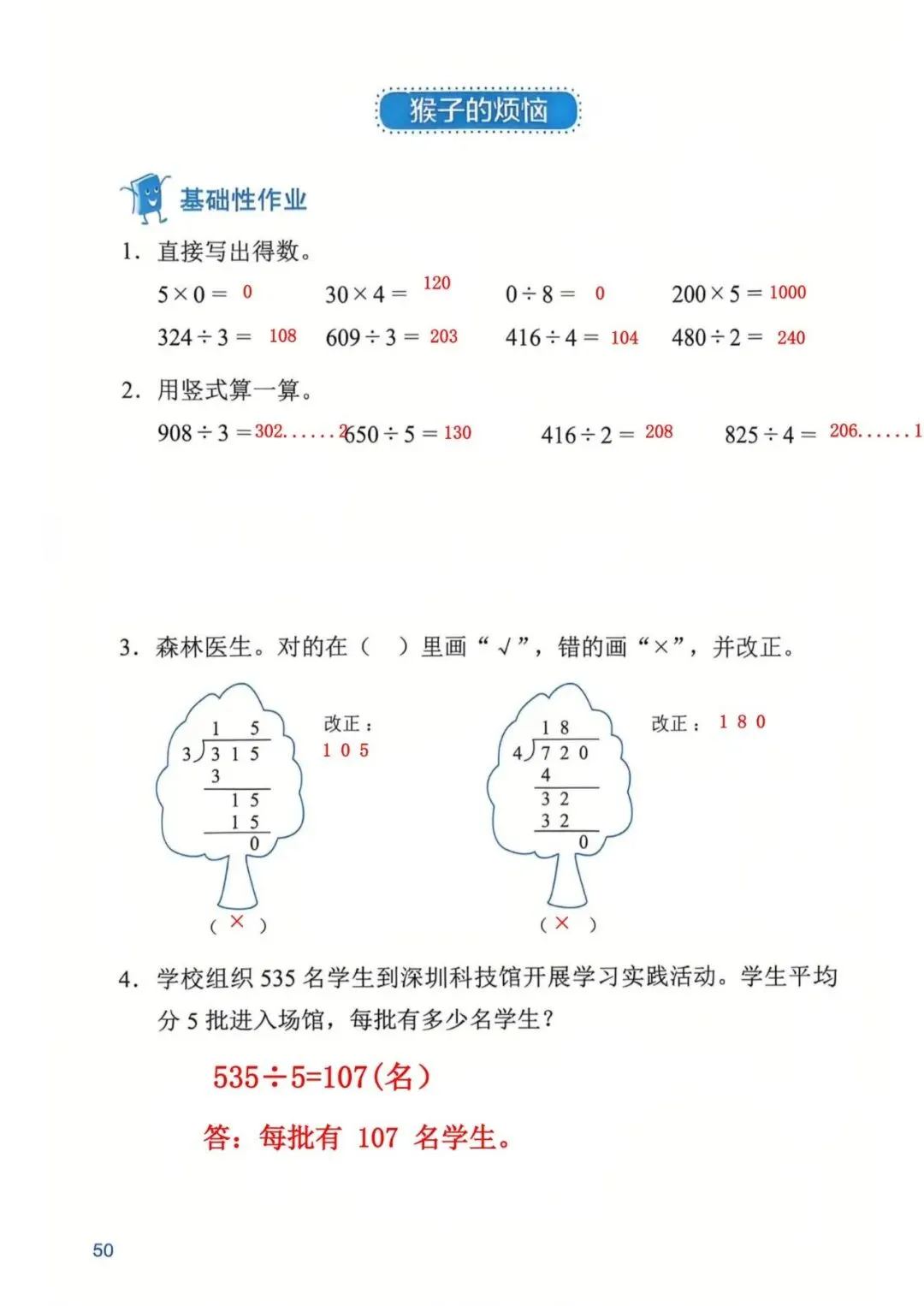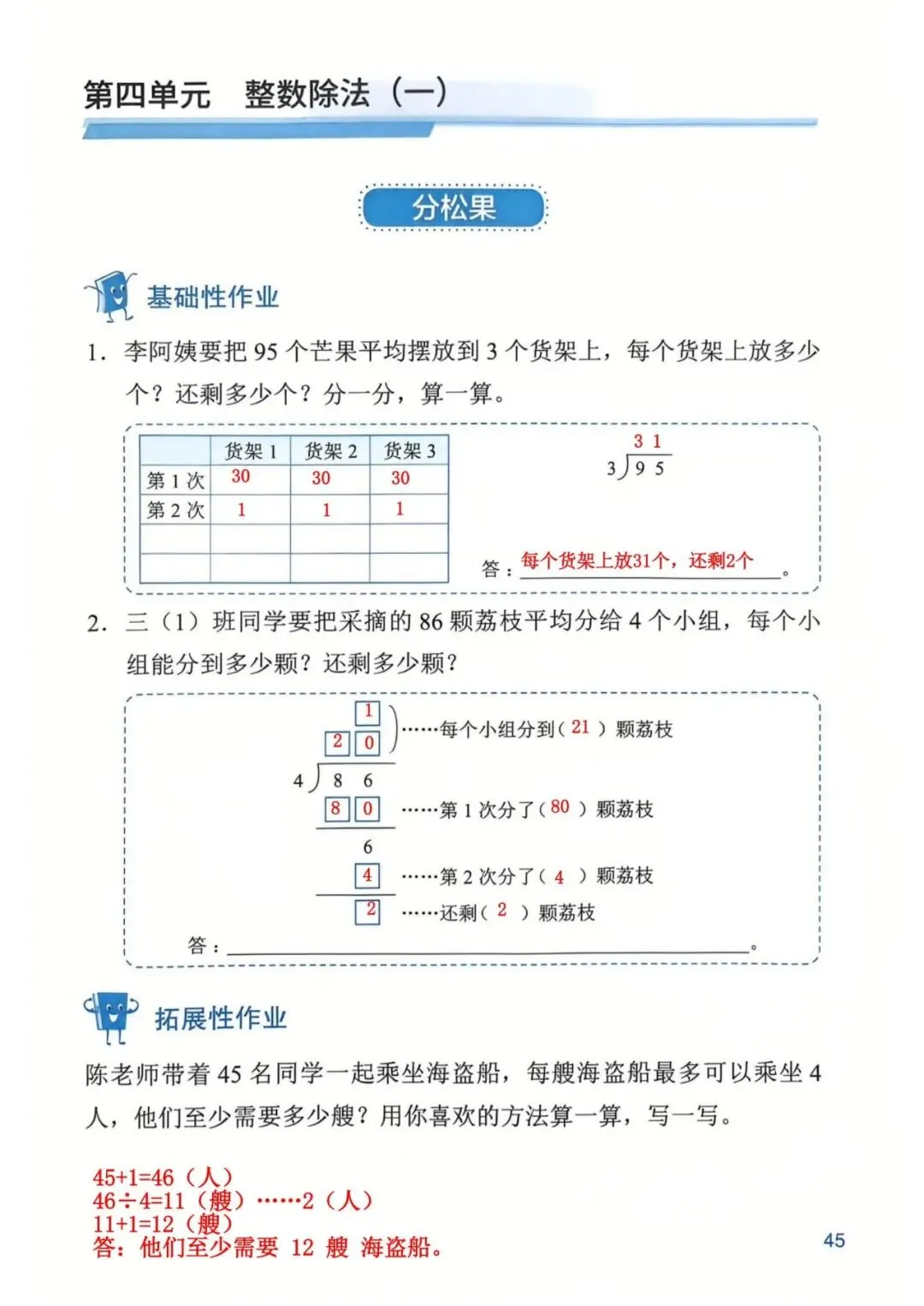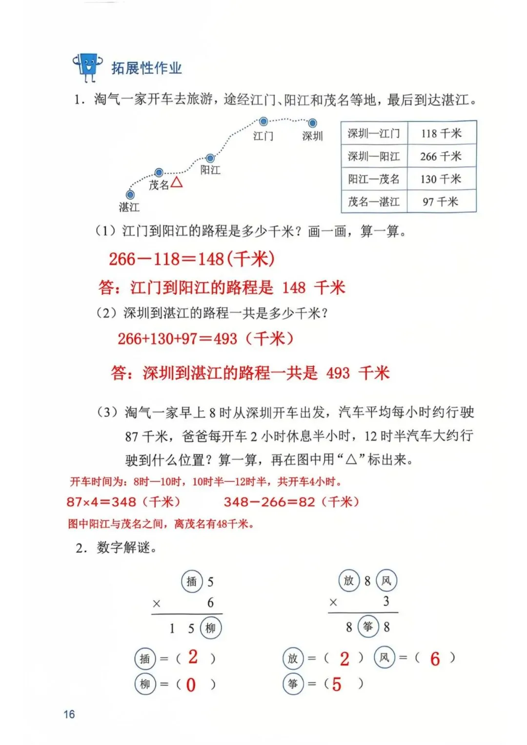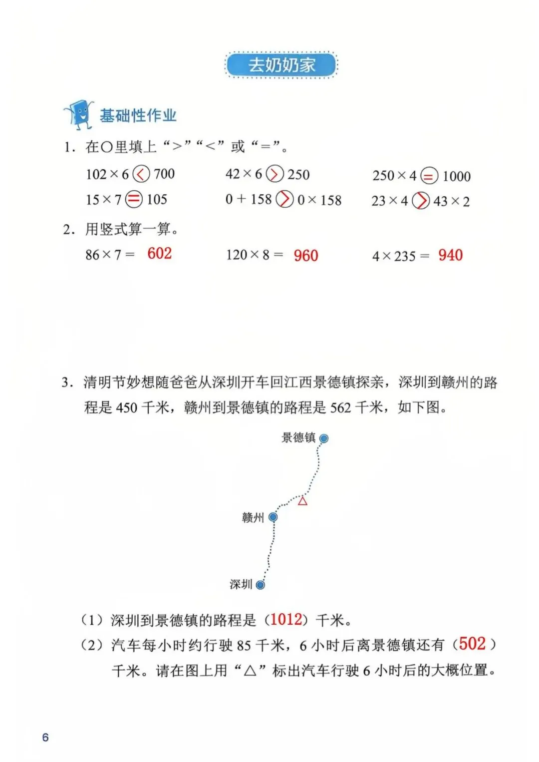 深圳数学三年级下册知识与能力训练答案A版53页(持续更新,关注)
