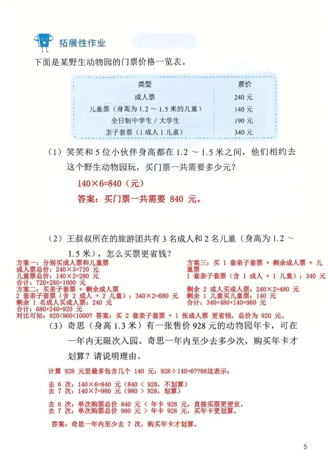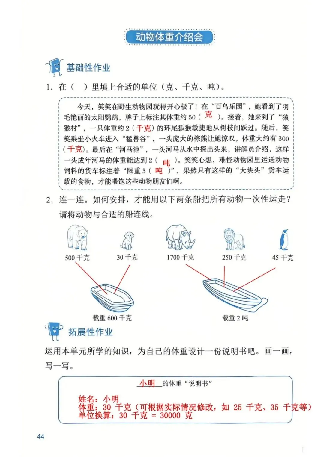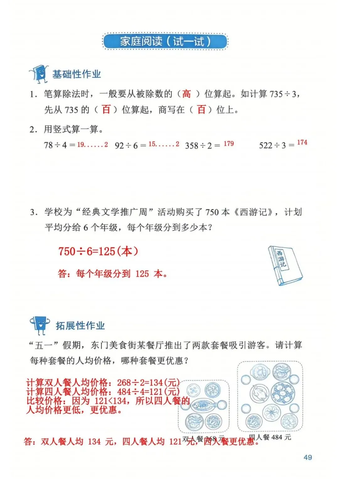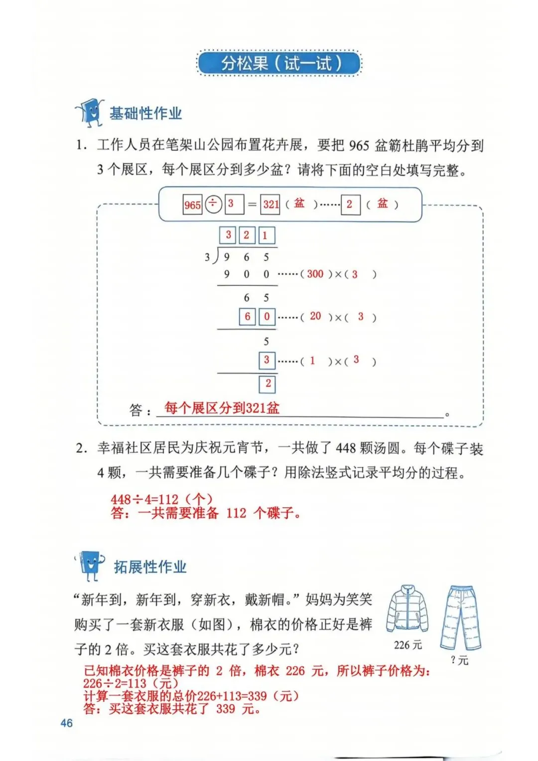 深圳数学三年级下册知识与能力训练答案A版53页(持续更新,关注)