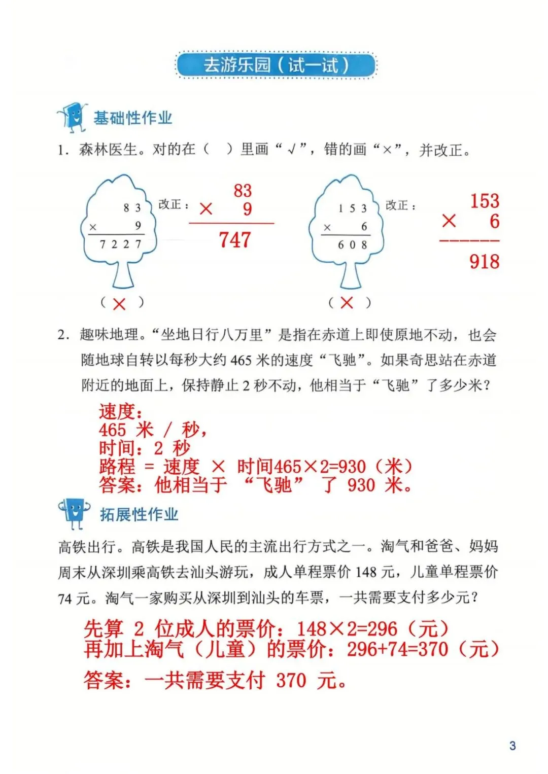 >深圳数学三年级下册知识与能力训练答案A版53页(持续更新,关注)