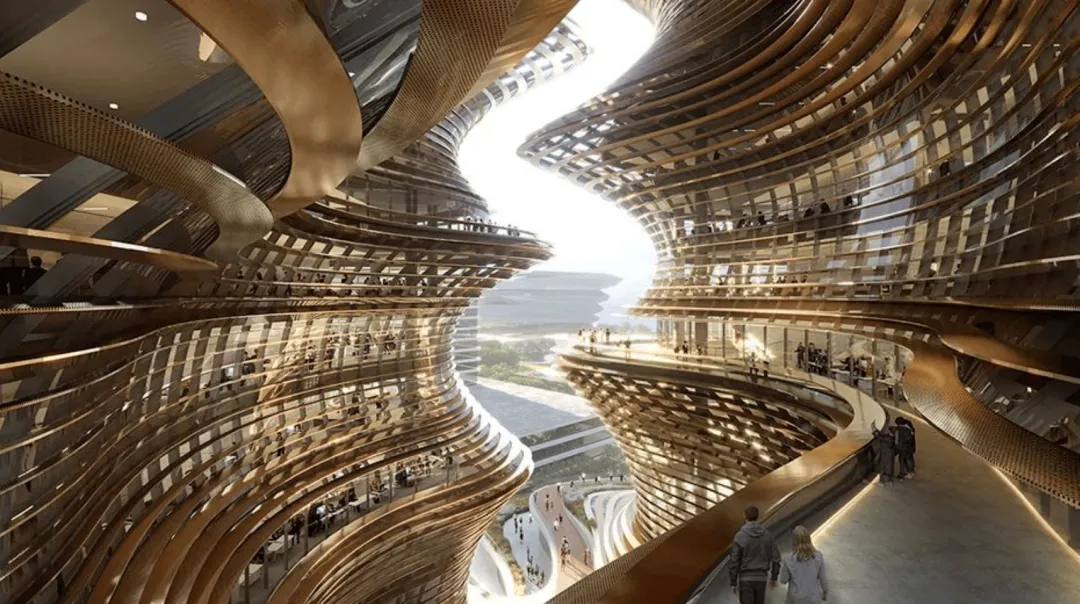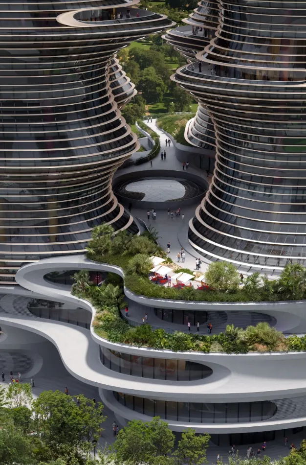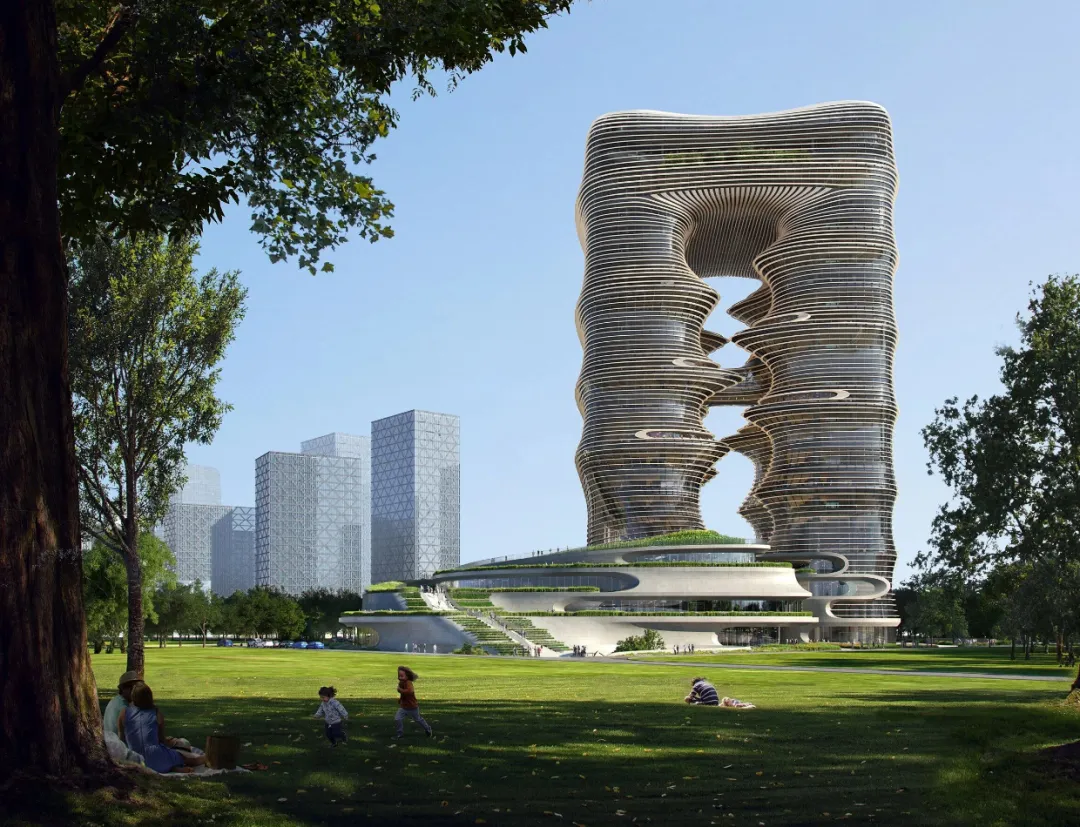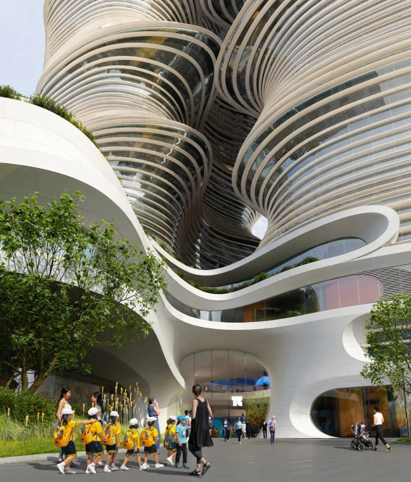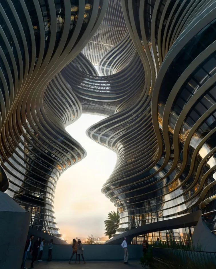 如果你在深圳前海,最近会发现这里长出了一个超级酷炫的地标建筑,非常像巨型的千层蛋糕大楼!这个大楼就是著名的深圳一丹中心。项目位于深圳前海合作区前湾。从目前的施工现场来看,建筑的基本的形态已现,目前建筑主体结构已经全面封顶,现阶段正全面开展外立面幕墙安装以及室内装修施工,预计 2026 年 7 月完成竣工并正式投入使用这个大楼的设计单位名头非常大!扎哈・哈迪德建筑事务所设计的!深圳市建筑设计研究总院承担施工图设计工作,总建筑面积达到 16.65 万平方米,建筑最高高度为 139.18 米,整体由两座 24 层的高层塔楼搭配 5 层裙楼构成,地下规划 3 层空间,用于停车与设备配套所以这个千层蛋糕大楼到底是干嘛的?是办公楼还是甜品店?有不少网友在社交平台上猜测,其实这个大楼是教育相关的,是区域重点打造的国际化教育文化地标建筑。建成后将作为陈一丹基金会与一丹奖的国际总部!深圳一丹中心的建筑造型和一般的摩天楼区别很大,是不规则流线设计,两座塔楼的楼板呈现弧形层叠状态,每一层的结构都有一点不大一样。就因为这种层层叠加的效果,所以才想千层蛋糕。建筑流畅的线条使大楼像自然峡谷的层叠地貌,双塔相对而立形成中空的建筑中庭,顶部通过连体桁架完成衔接,构建出通透且富有动态感的建筑轮廓。建筑外立面采用渐变肌理的建筑板材搭配通透玻璃材质项目的设计理念很好理解,根自然峡谷相关,模拟出自然地貌的流动感,还结合传统人文理念与现代教育,让这个建筑看起来很有生命感。建筑内部设置通高的峡谷中庭,还有螺旋上升的公共坡道,因此室内的采光也不错,大楼中间形成的峡谷也成为了一个酷炫的公共空间。你觉得深圳一丹中心竣工后能还原效果图酷炫的效果吗?欢迎留言评论区!