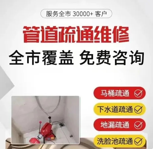 专业提供疏通下水道、管道疏通、马桶疏通、地漏疏通等同城上门服务。