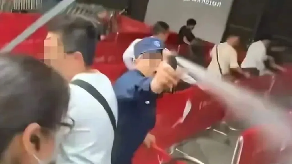 就在这时候,一名保安掏出辣椒水直接往人群里喷,多人被喷得捂着脸咳嗽不止,惊慌奔逃,尖叫声此起彼伏 。